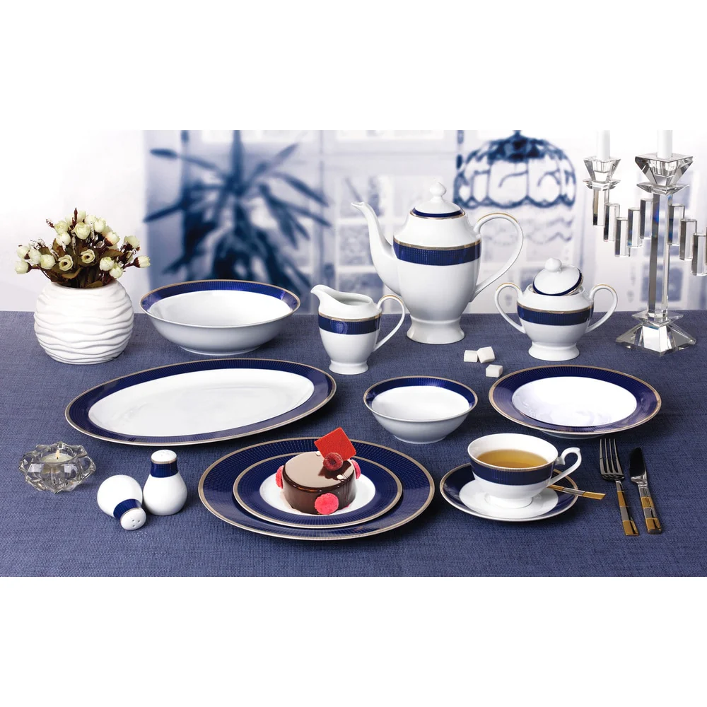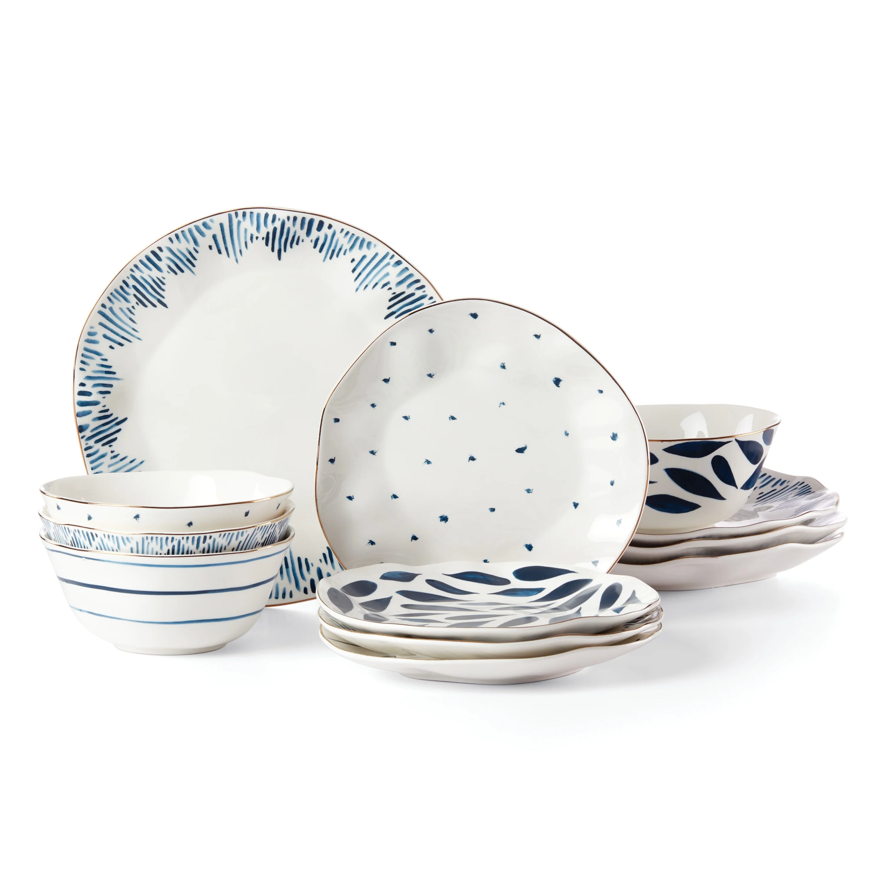 222 Fifth Nightingale 12-Piece Blue Porcelain Dinnerware Set – Service for 4, Plate & Bowl Set