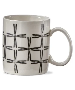 Hashi Black Graphic Print on Cream Beige Background Stoneware Coffee Tea Hot Coco Mug, 16 oz.