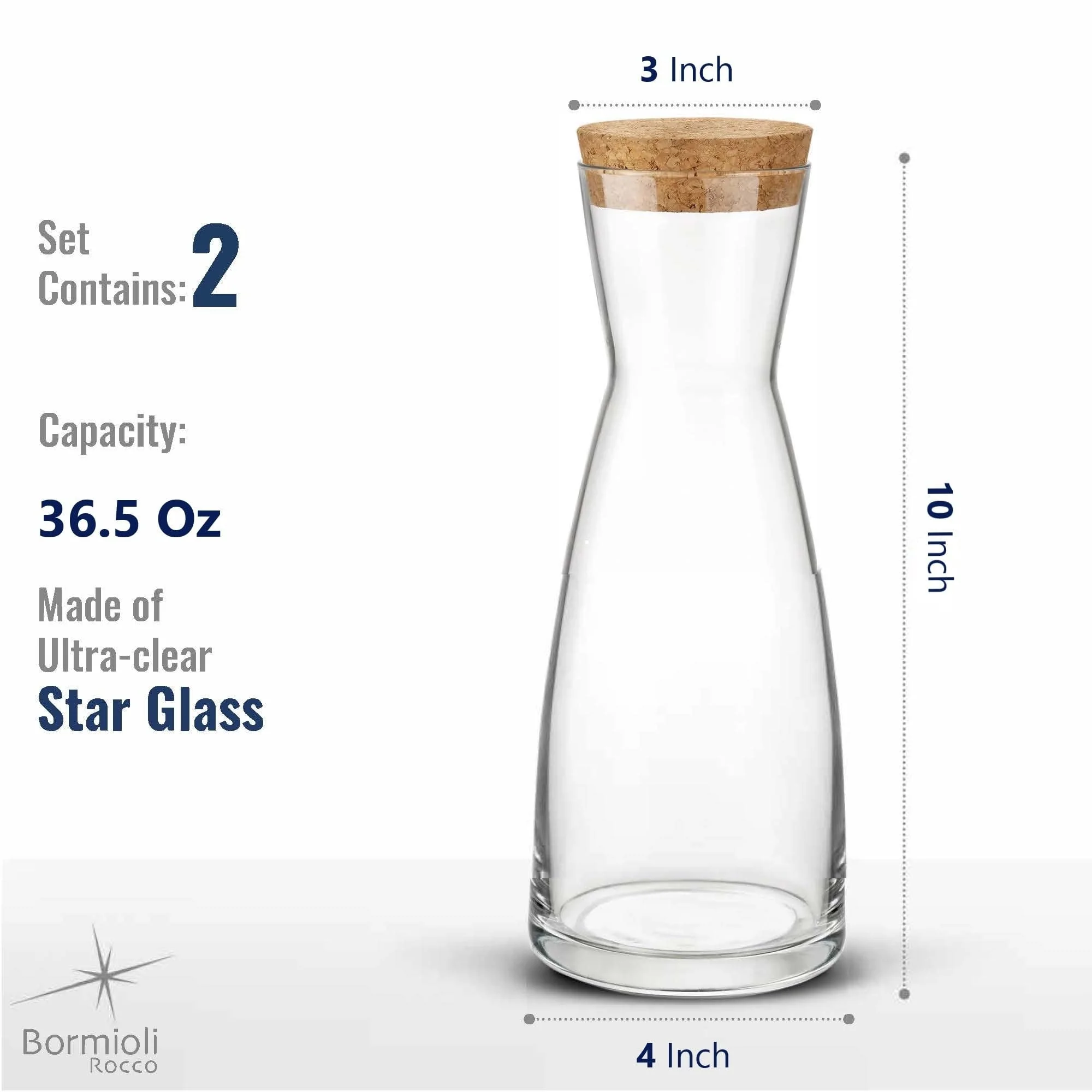 Bormioli Rocco Set of 2 Ypsilon Carafe with Cork Tops – 36.5 oz