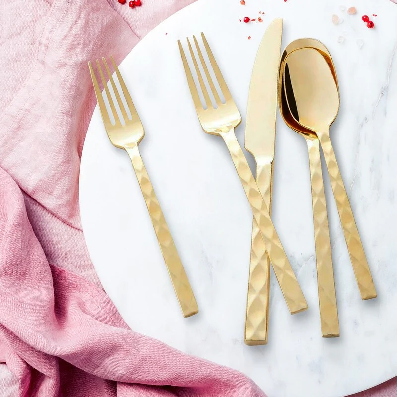 Argent Orfèvres™ Marion White & Gold – 20 Piece Flatware Set, Service for 4, Forged 18/10, Titanium