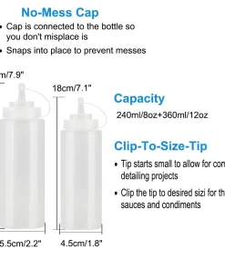 Kitchen PE Squeeze Bottles Vinegar Barbecue Condiment Dispenser 2pcs – White – 240ml/8oz+360ml/12oz