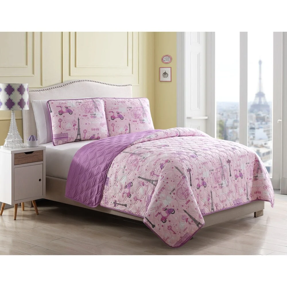 Daily Boutik Full/Queen 100% Cotton Kids Teal Purple Unicorn Quilt Coverlet Bedspread Set