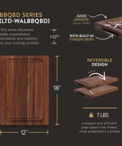 John Boos BBQ Collection Reversible Wood Cutting Board w/Juice Groove, Walnut – 12 x 18 x 1.5 in