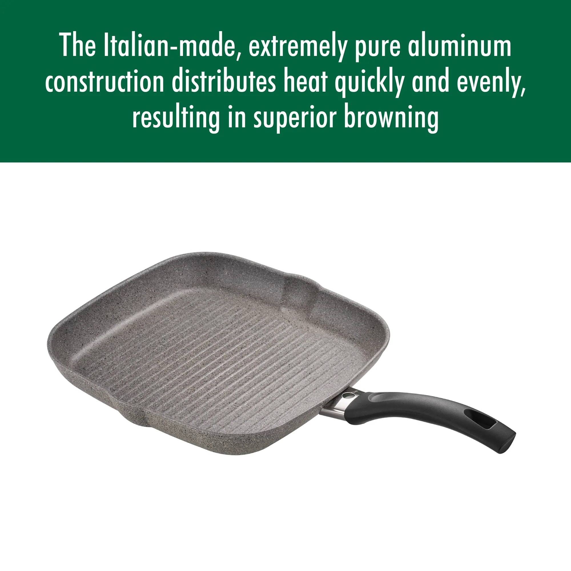 BALLARINI Parma by HENCKELS Forged Aluminum 11-inch Nonstick Grill Pan, Made in Italy – Granite