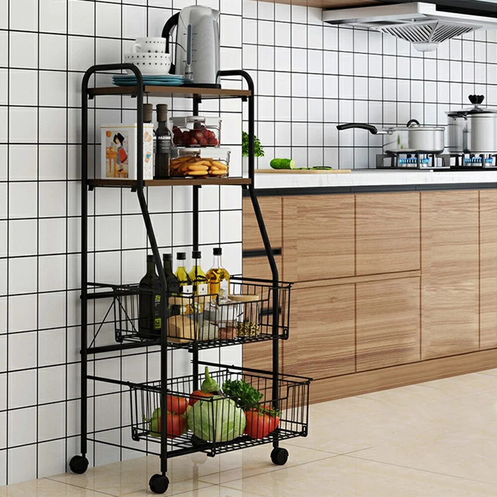 4 Tier Mobile Kitchen Storage Rack Freestanding Utility Stand – 43.4" H x 16.93" W x 12.6" D