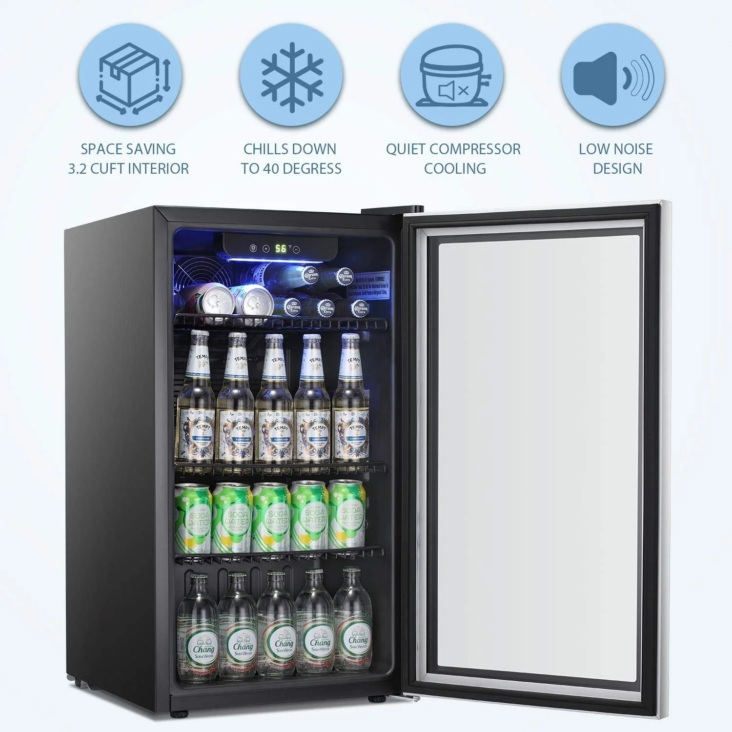 Beverage Refrigerator Cooler – 120 Can Mini Fridge Glass Door