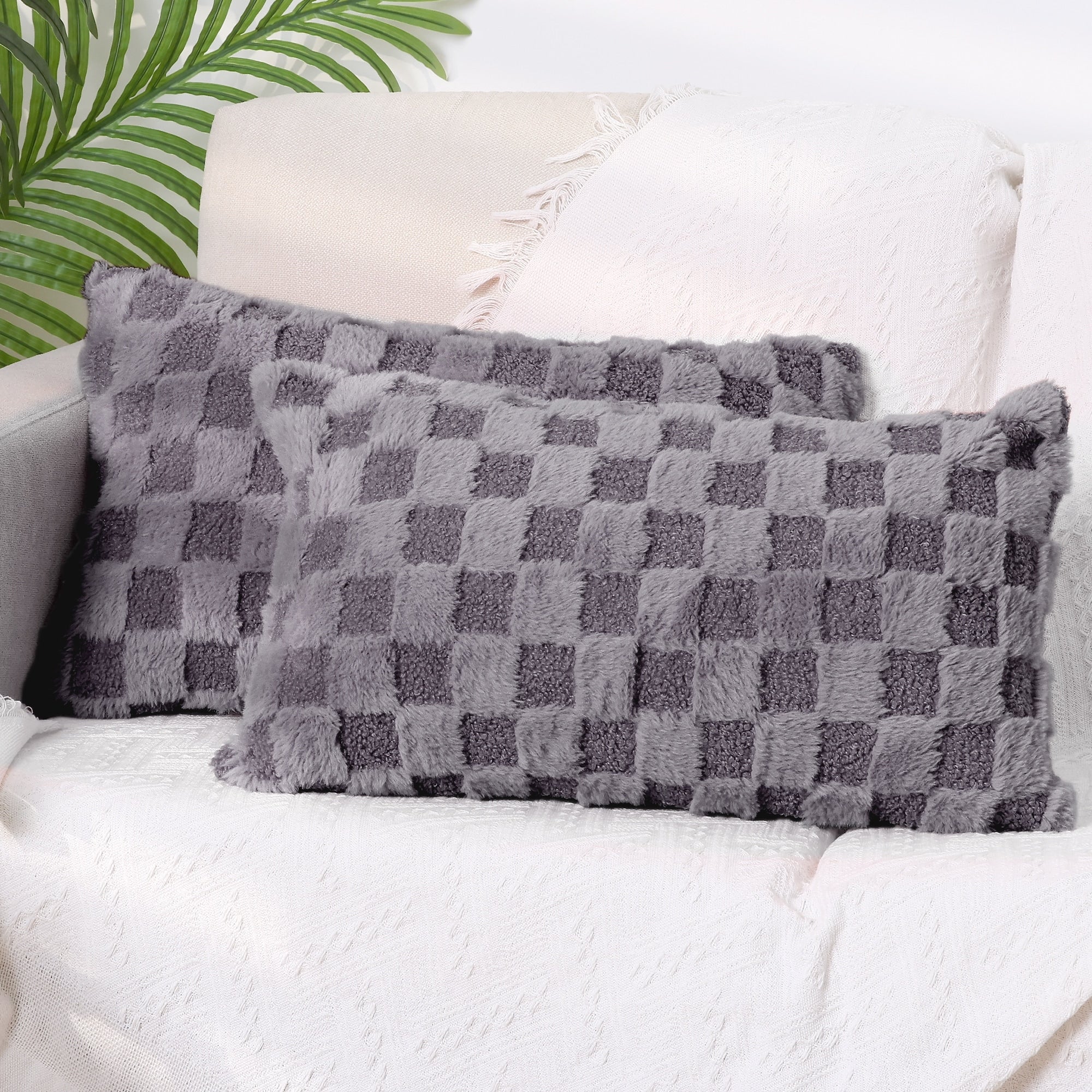 2 Pack Soft Plaid Decorative Throw Pillow Covers Cozy Plush Pillowcase