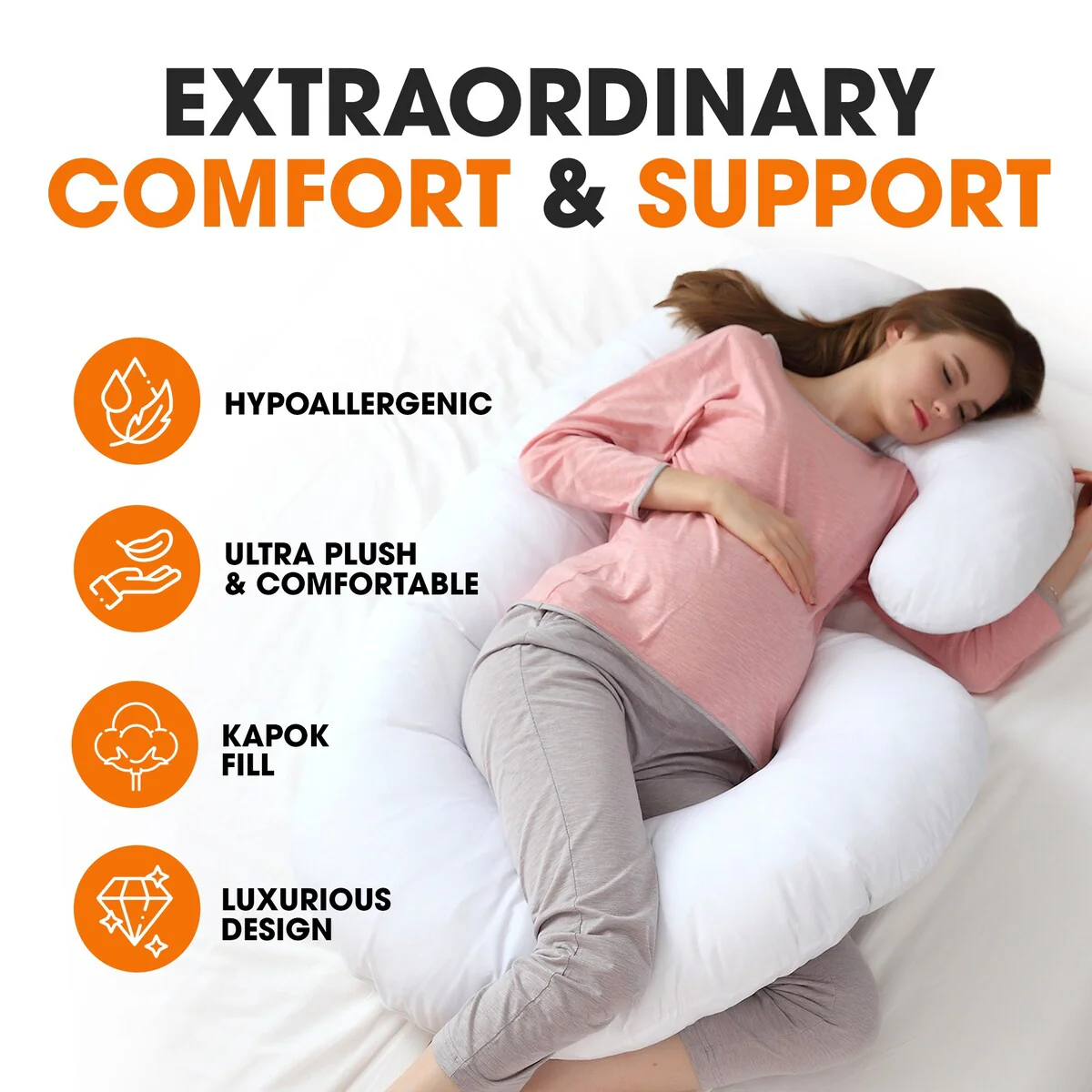 Cheer Collection J-Shape Kapok Pregnancy Body Pillow with Washable Cover