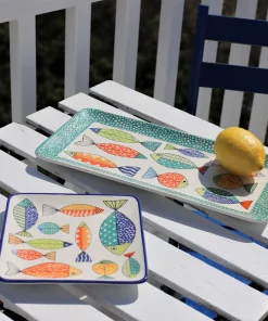 Euro Ceramica FreshCatch 4 Piece Square Canape Plates Set – 7.28 in. x 7.28 in. x 0.87 in.