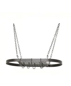 Daily Boutik Oval Hanging Pot Rack with Chains and 2 Hooks in Matte Black – 2" x 33" x 17"