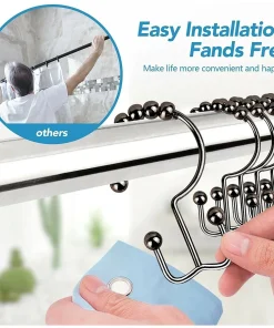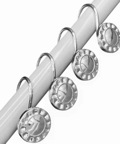 12 Piece Stainless Steel Shower Curtain Rings with Roller Ball – Silver