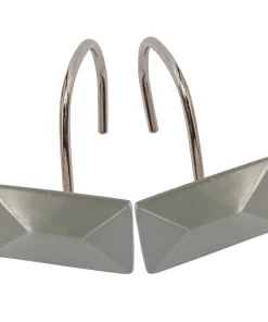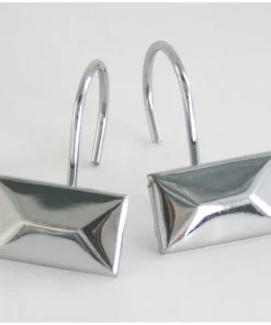 12 Piece Set – Chrome Heavy Duty Shower Rectangle Curtain Hooks Rings Rustproof Metal
