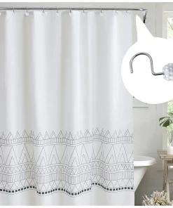 12 Piece Set – Chrome Button Heavy Duty Shower Curtain Hooks Rings Rustproof Metal