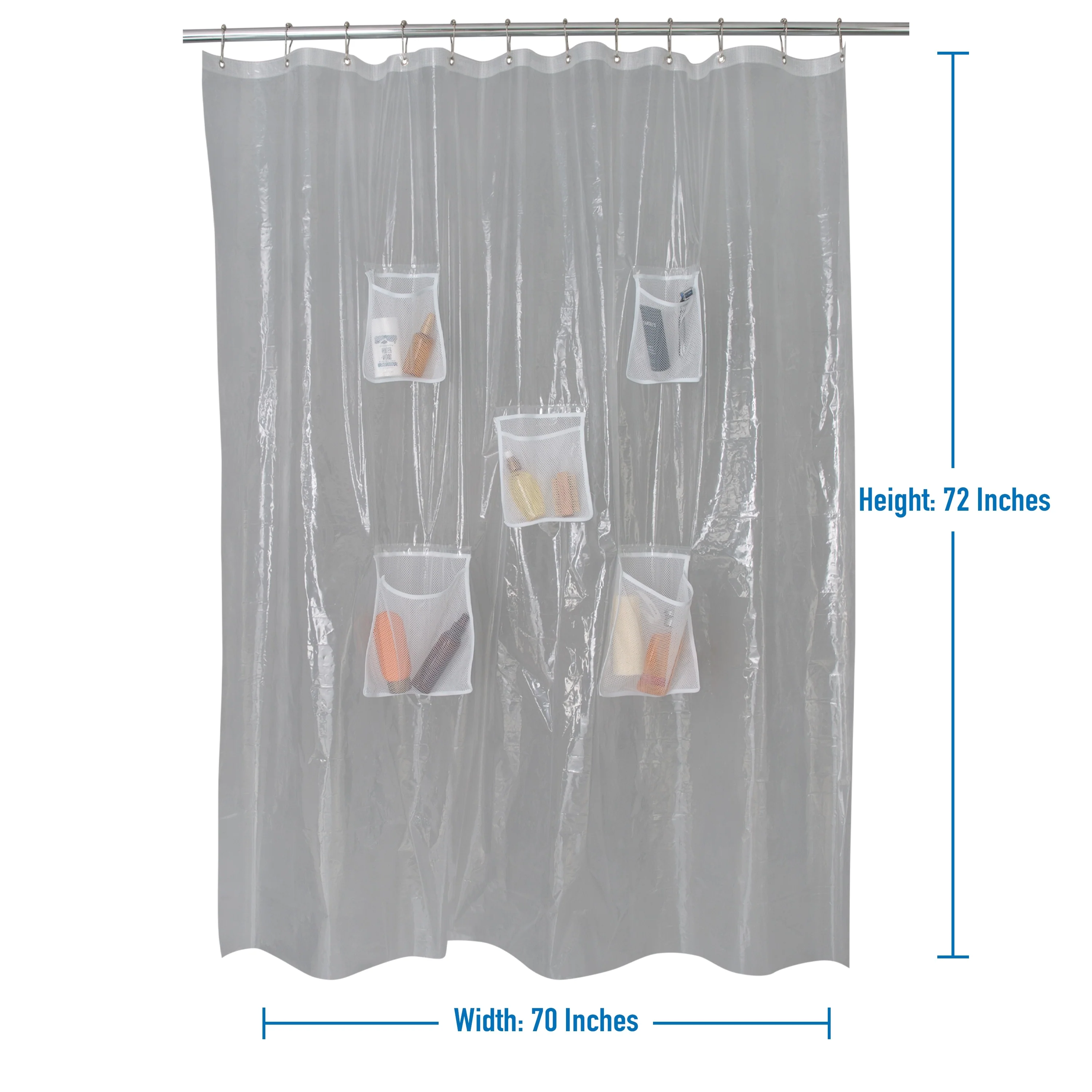 Bath Bliss Heavyweight PEVA Shower Liner with 5 Mesh Pockets