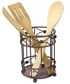 Home Basics Arbor Collection Cutlery Holder with Mesh Bottom and Feet – 6.75" x 5.6" x 5.6"