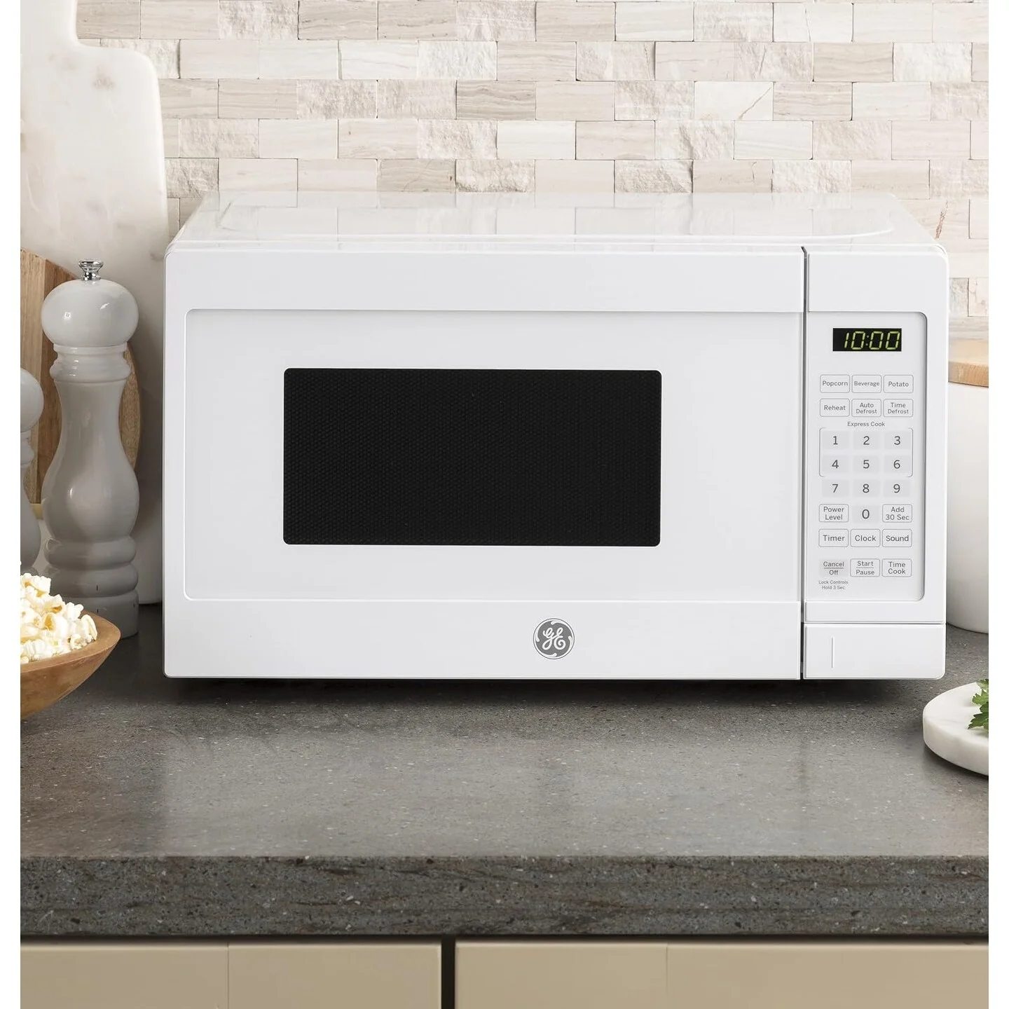 COMPACT YET POWERFUL: 700 watts of power and 0.7 cu. ft. inside allow for effective, efficient cooking while not taking up valuable kitchen space; glass turntable rotates for optimum cooking EASY SET UP: Freestanding microwave fits easily on countertop or open shelf, with 39 power cord CONVENIENT CONTROLS: Simple, one-touch operation with Instant On express cooking controls and multiple cooking modes; kitchen timer, child lock controls and cooking complete alarms add convenience EASY AUTO OR MANUAL DEFROST: Defrosting times and power levels can be programmed or set manually for optimal results SOLID, SLEEK DESIGN: Clean lines, electronic keypad and white color with black glass construction provide elevated design