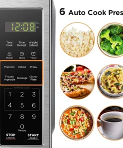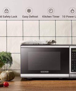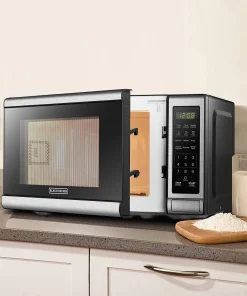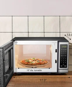 0.7 Cu Ft Digital Microwave with Turntable, Push-Button Door & Child Lock in Stainless Steel 700W