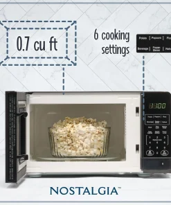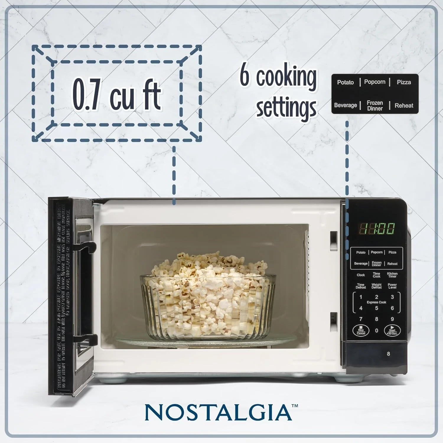 0.7 Cu Ft Modern Retro Microwave with 700W, 12 Presets & Black Exterior