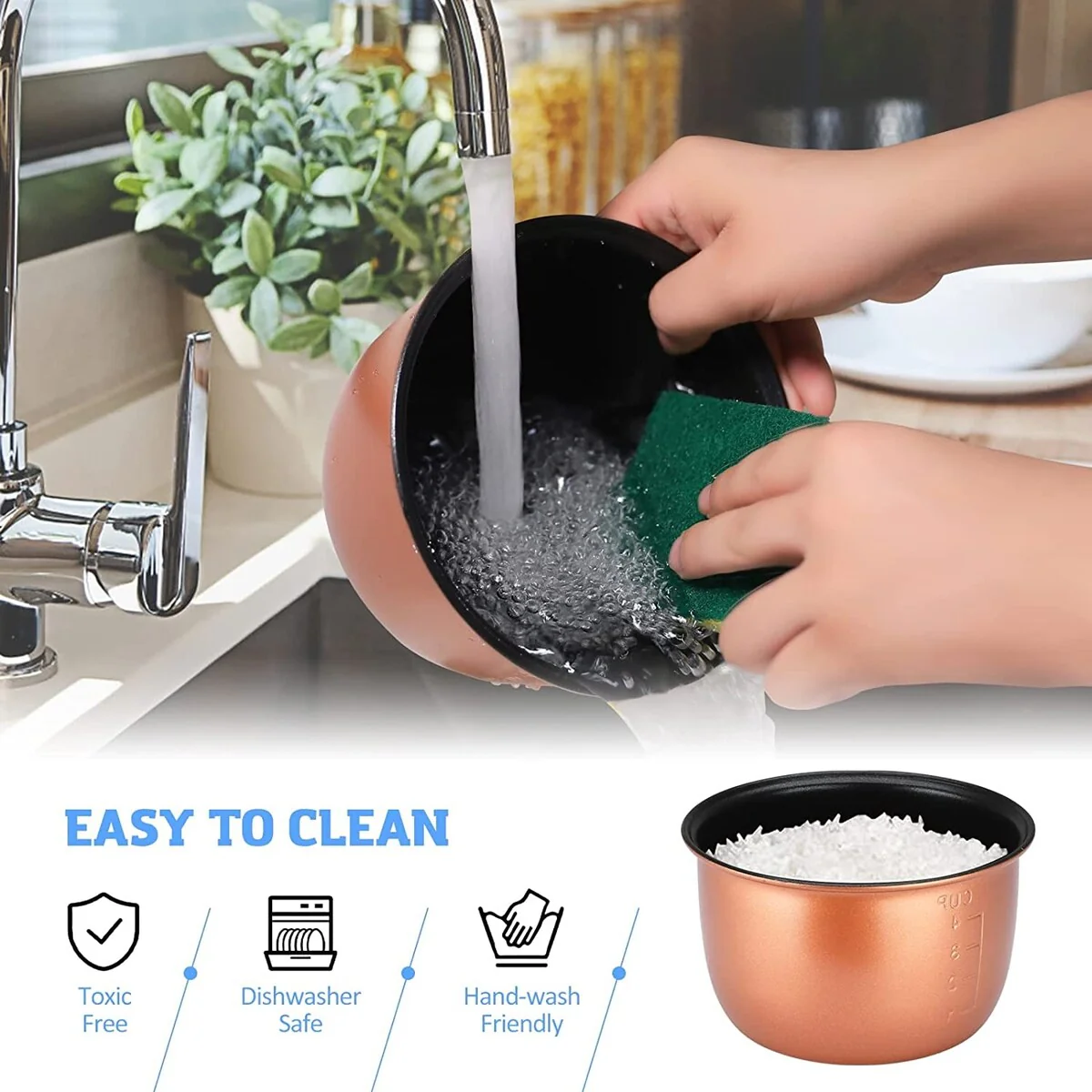 Making rice and whole grains in the this perfect Rice Cooker is as easy as placing the ingredients in the bowl and turning it on.The rice will cook perfectly on its own, giving you time to prepare the rest of your meal. There’s no need to worry about boiling water, adjusting the temperature or even setting a timer, it will automatically shift to warm once the cook cycle is complete. Clean up is a snap with the dishwasher safe nonstick cooking bowl and rice rinser / steam basket. The lid liner can also be removed for quick cleaning. Its compact size makes for easy storage.Features:1. 15 minutes to finish cooking;1.0L Capacity,suitable for 1-2 people,suitable for a family of two and busy office workers,can save time for you.2. ALL in 1 Multi-cooker: A novice in the kitchen? It doesn’t matter. With this all-in-1 smart electric cooker,everyone can choose the most desired way to cook a big meal easily. Rice, soup,oatmeal,cake, yogurt,pasta or dessert.3. Keep Warm Function:This mini rice cooker has updated with a keep Warm function and indicator light,never overheat or overcook ingredients again,making for a healthy,perfect meal every time.4. UNIQUE DESIGN: The bottom of the rice cooker has a heat dissipation port ,so as to prevent the damage of the machine caused by the excessive temperature,so that the rice cooker has a longer service life;the inside of the rice cooker is a pot with non-stick coating,easy clean.5. Package Includes:Our 110V mini rice cooker is backed by a 365 Days manufacturer service and includes a rice paddle,rice spoon,measuring cup,removable pot with PFOA-free nonstick coating. 24hs Customer Service, any quesiton pls contact us anytime!6. Operate according to the instructions, adding the appropriate amount of water to your taste, and do not exceed the maximum level.
