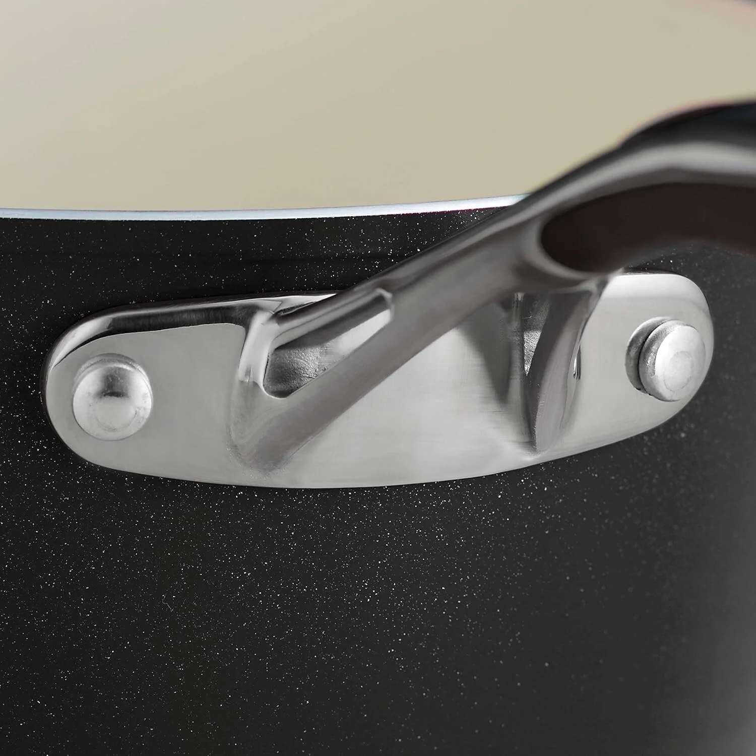 Tramontina gourmet Ceramica Deluxe cookware is made of heavy-gauge cold-forged aluminum, features a durable metallic black porcelain enamel exterior and a smooth, ceramic interior coating, which provides simple healthy cooking, effortless cleaning and outstanding durability. Heat- and shatter-resistant glass lids allow you to monitor cooking progress, while soft-grip, cast stainless steel handles ensure comfort and stability when handling cookware.Â