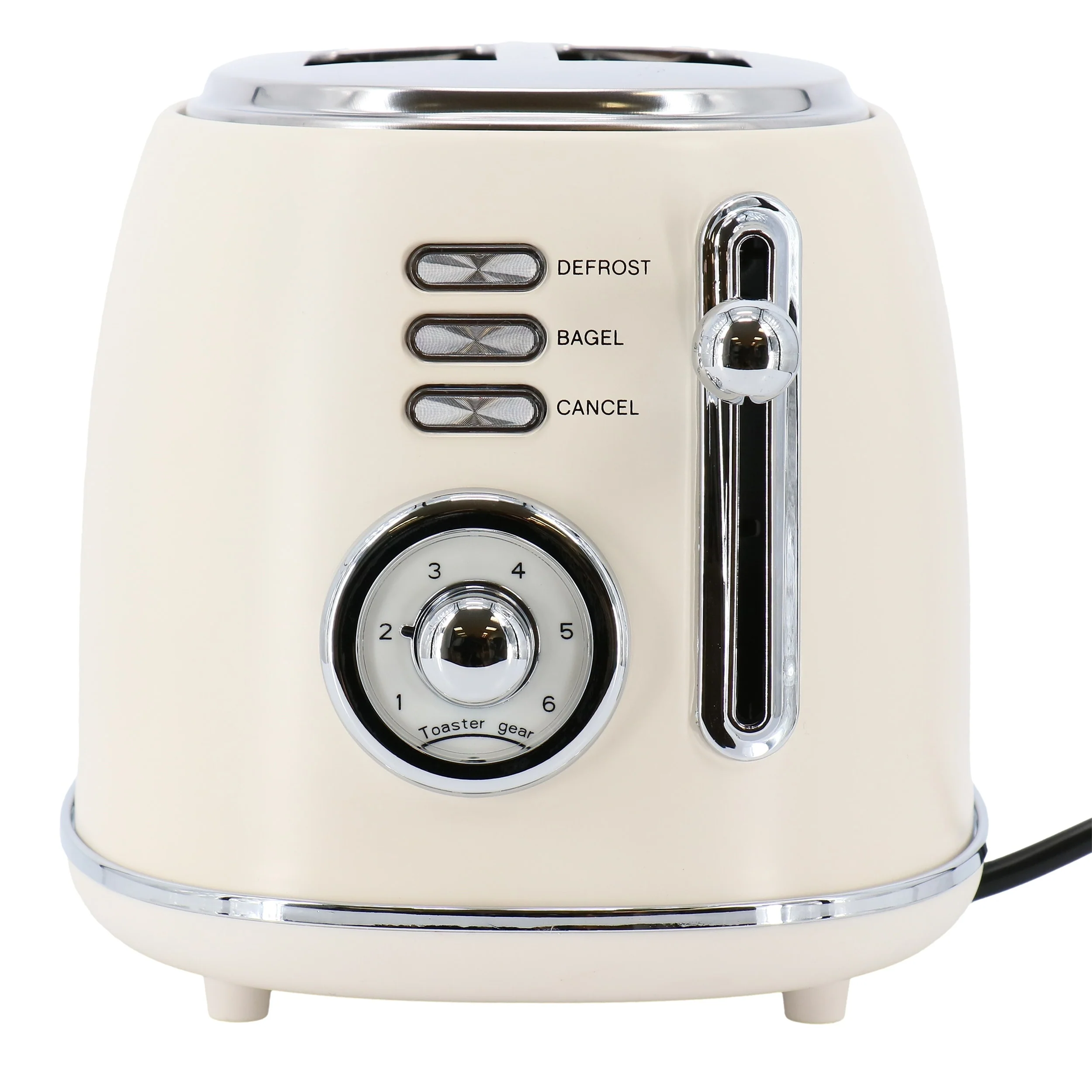 Add a touch of elegance with the MegaChef 1.7 Quart Electric Tea Kettle and 2 Slice Toaster Combo in Matte Cream. Beautiful Matt Cream color with Silver accents brings in a subtle touch of color with a bold statement. Retro design fits in perfectly with any kitchen. Easy to operate buttons and dials. Â Kettle features an easy to ready thermostat allowing you to monitor boil temperatures and transparent water level. Toaster features 6 browning setting with Defrost, Bagel and Cancel functions. Â Color: Matte Cream Kettle – 1.7 Quart Capacity 1500 Watts, 120V 60Hz Fahrenheit Thermometer Chrome Plated 304 Stainless Steel Body Automatic Switch Off Boil Dry Protection Detachable Filter Transparent Water Level 360 Degree Cordless Base with Cord Storage Measurements: 9.5" H x 9" L x 6" W Toaster – 2 Slice Capacity 850 Watts, 120V 60Hz Metal Body 6 Browning Settings Removable Crumb Tray Indicator Light Defrost, Bagel, Cancel Functions Cord Storage Anti-slip Feet Measurements: 10.75" L x 7.5" H x 6.1" W