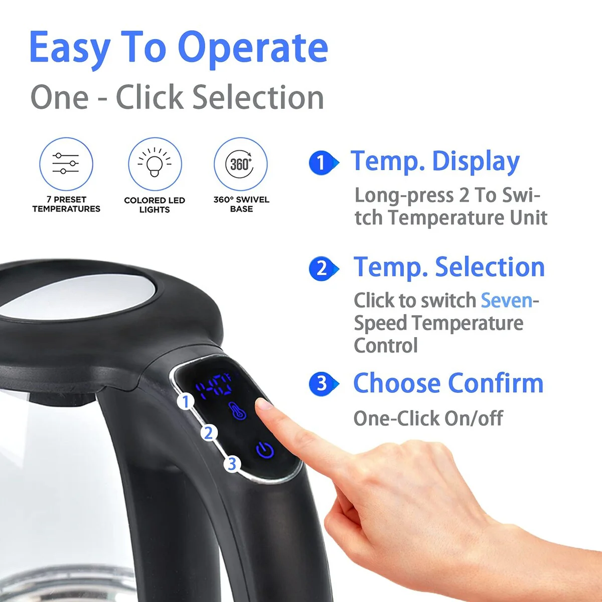 1.7L Electric Glass Kettle 1500W Temperature Control Fast Water Boiler BPA Free Auto Shut-off Protection