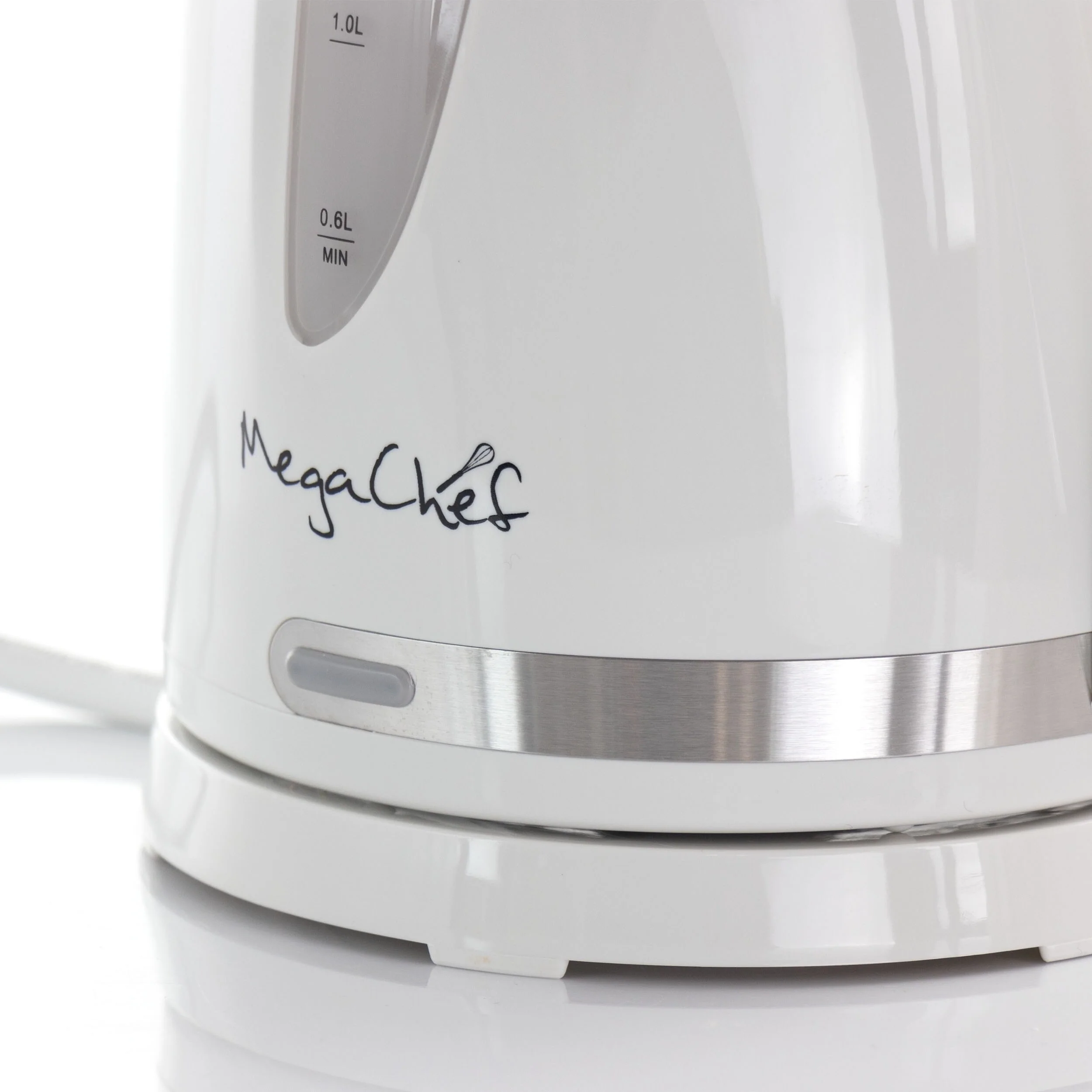 Make all your favorite hot beverages and more with the MegaChef 1.7Lt. Plastic Electric Tea Kettle. This kettle has a cordless jug which makes serving easy! This kettle features boil-dry protection, and worry less about messes with the drip-free spout. This kettle is perfect for homes, campers and dorm rooms. Compact size is ideal for any counter space while easily storable in a cabinet. Item Dimensions: 11.00" x 7.50" x 7.50"Item Weight: 2.00lbs