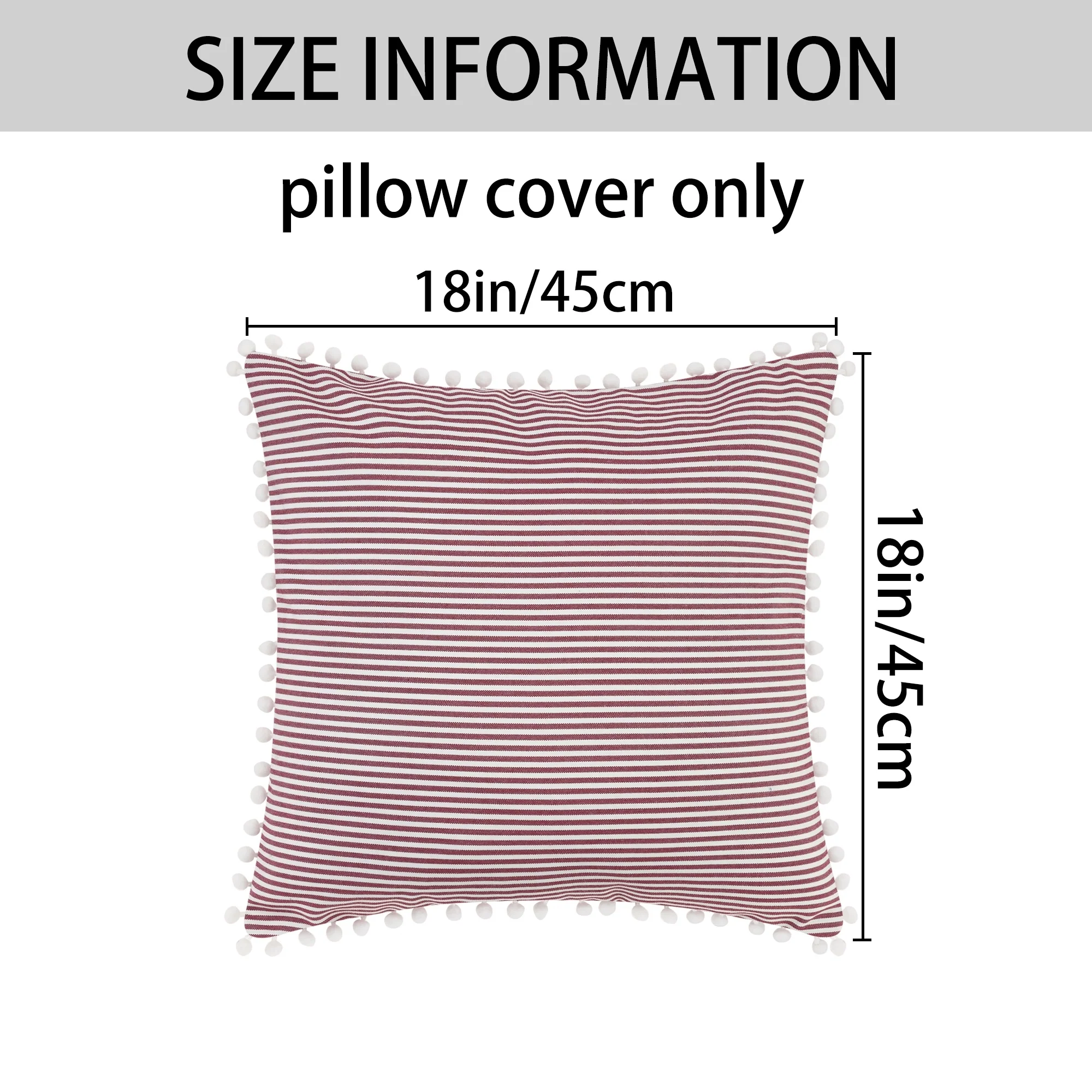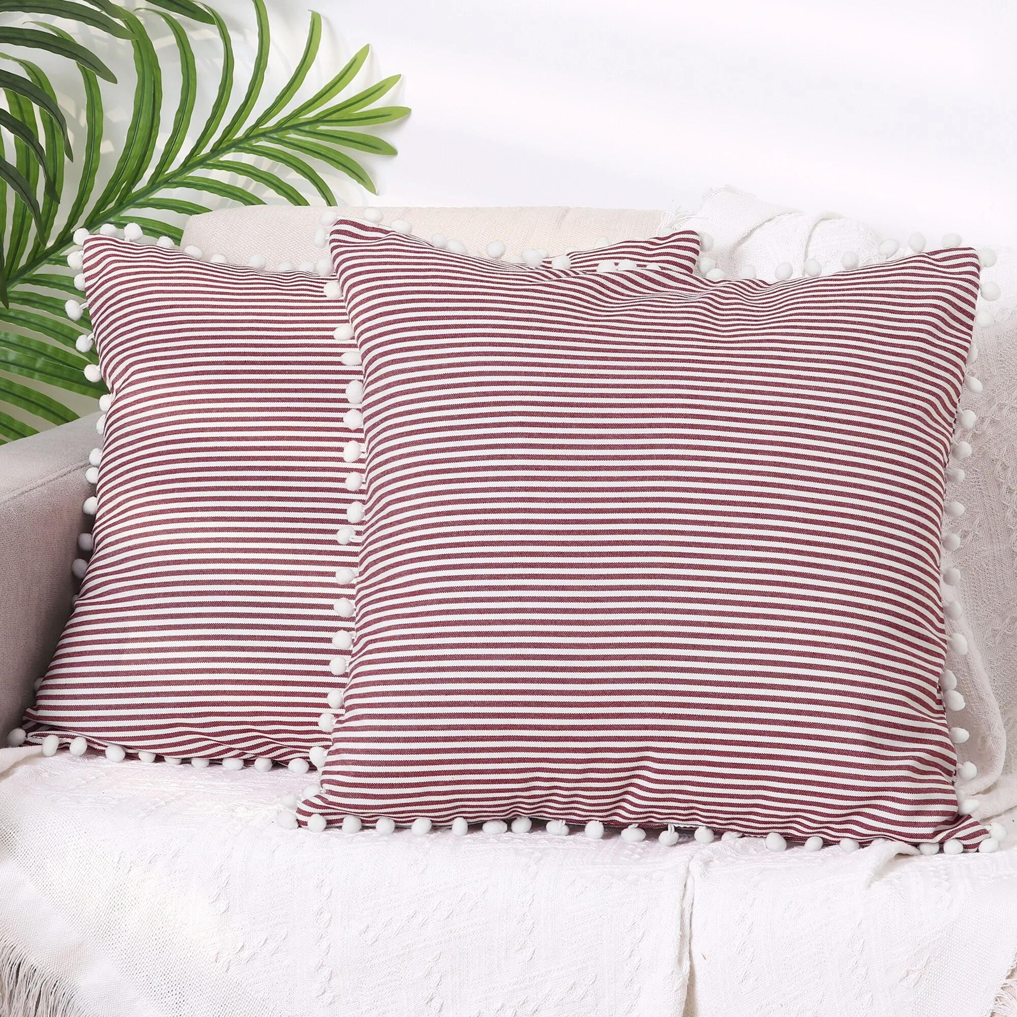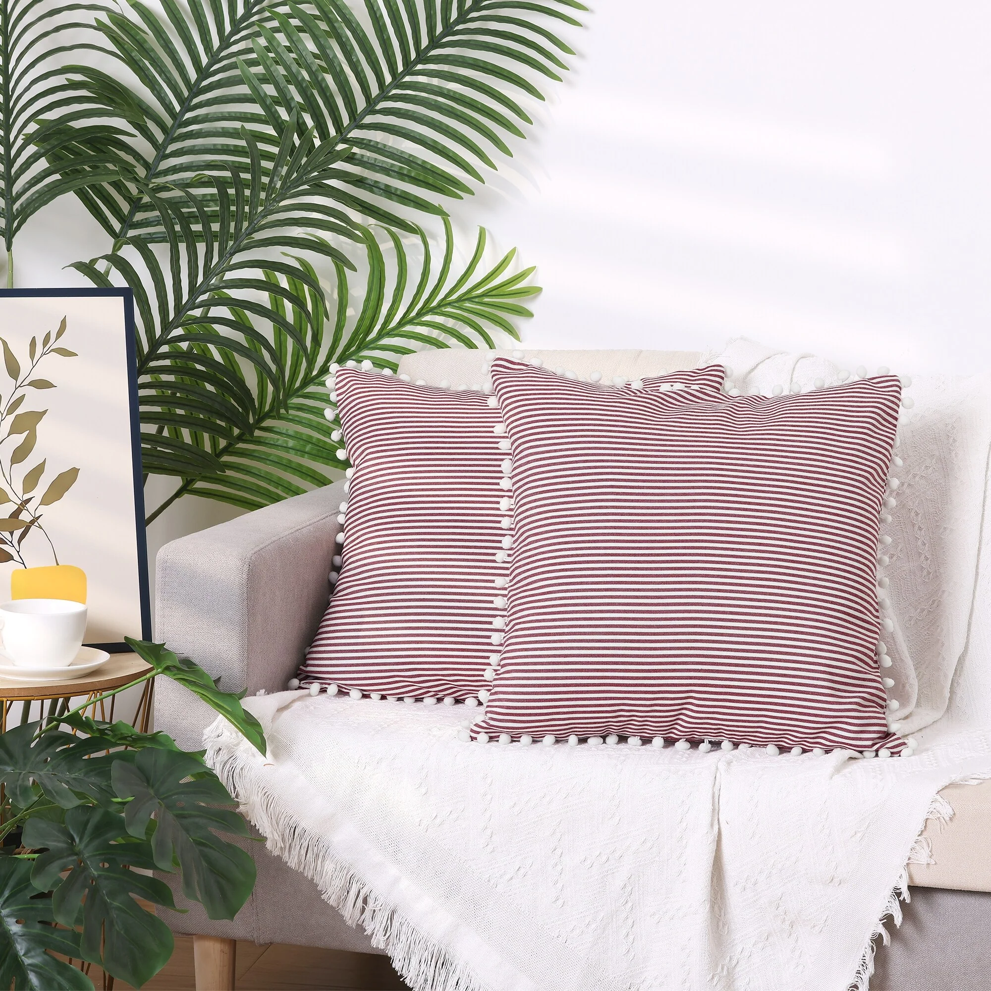 1 Pair Striped Pillow Cover with Pom Pom Fringe for Home Cushion Case