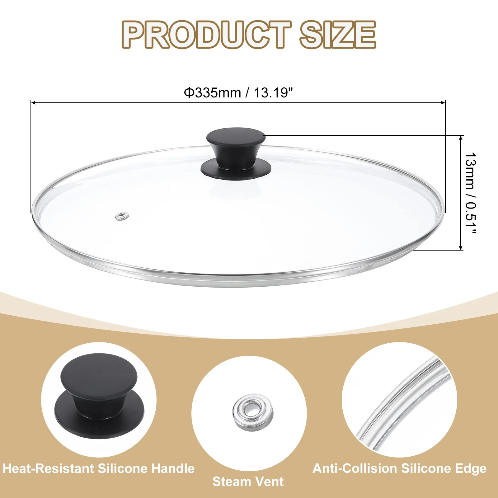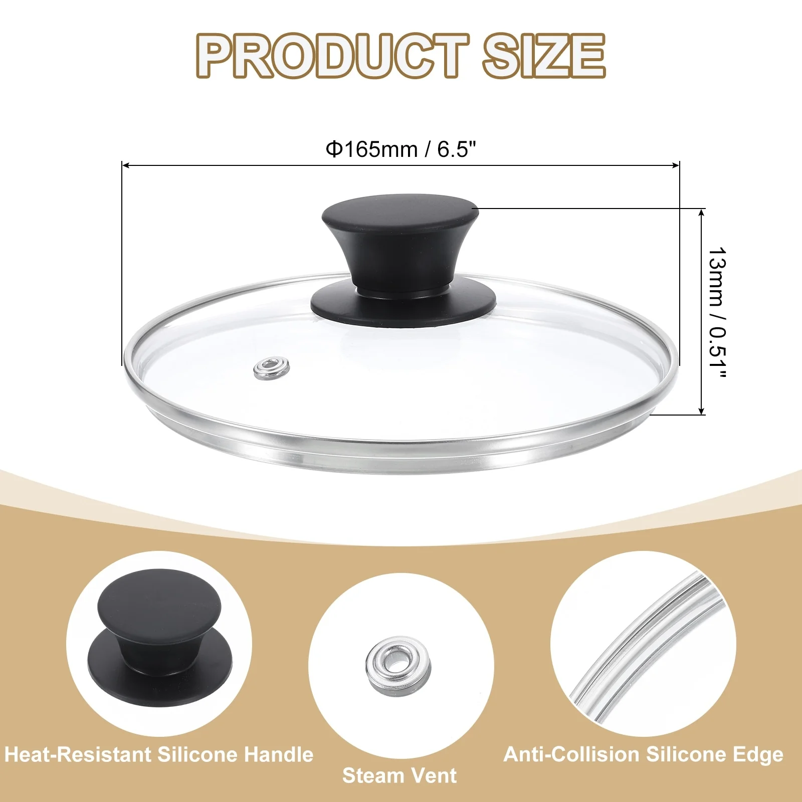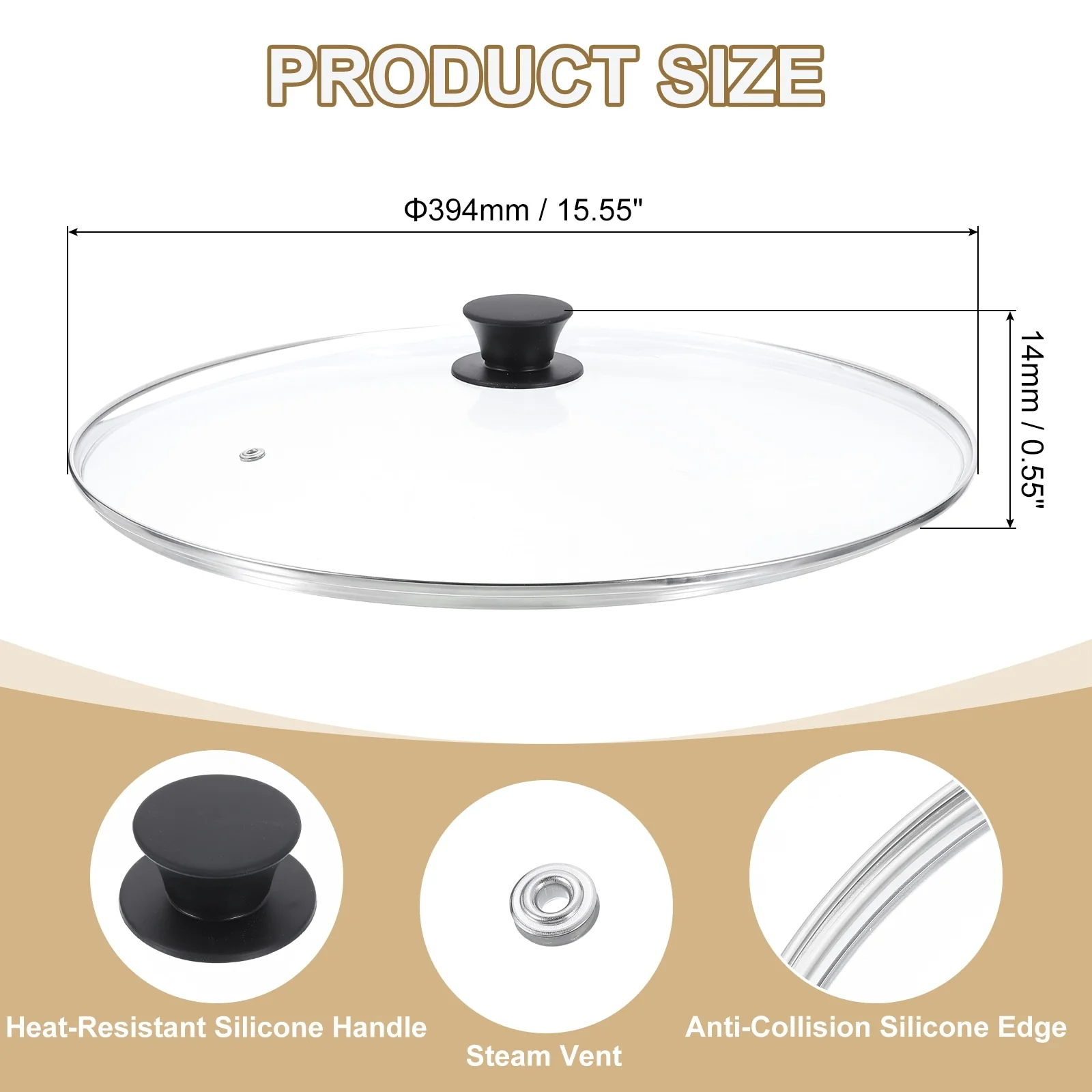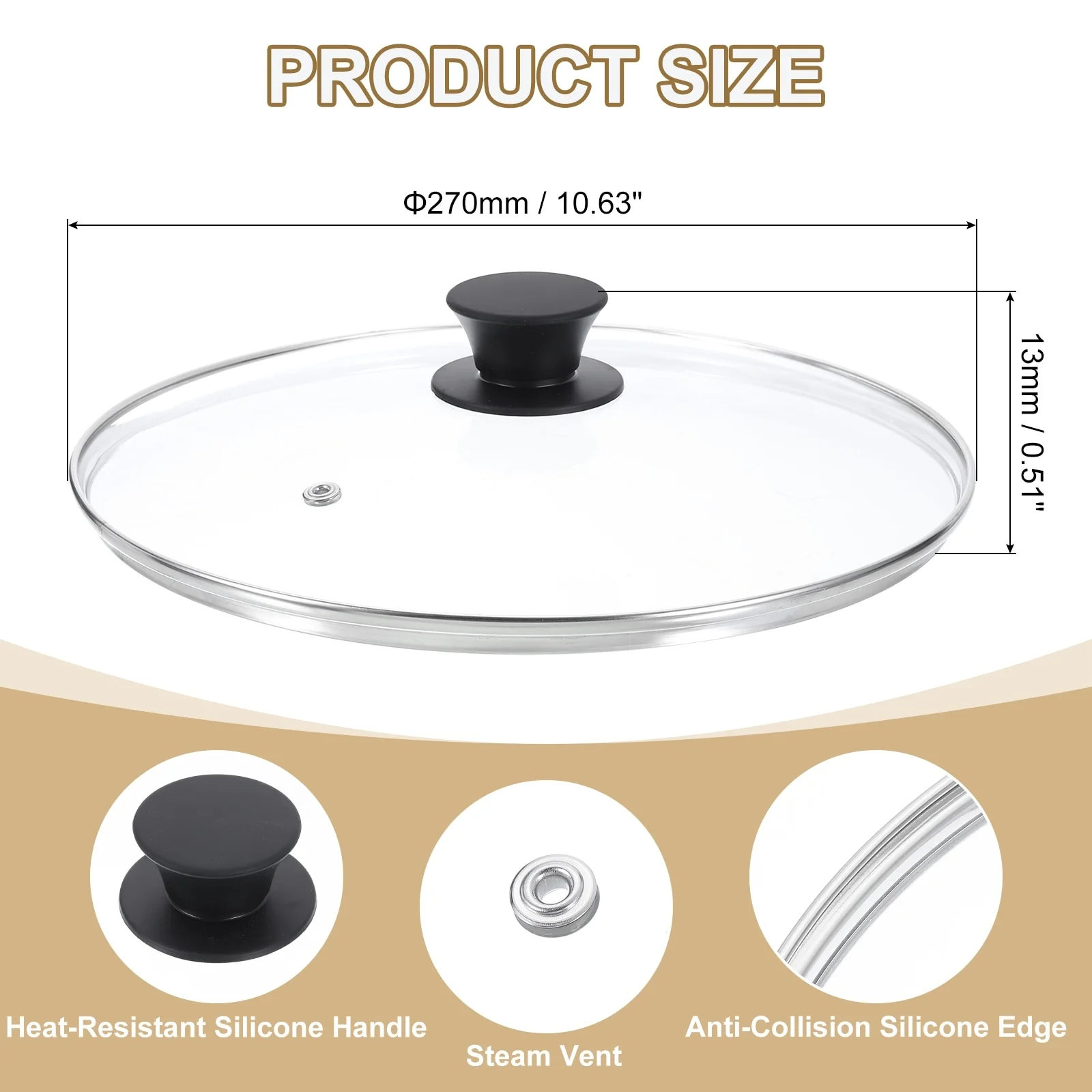 - [Material]: Made of tempered glass, it is stronger and more resistant to heat shock than ordinary glass lids, this ensures that the lid is explosion-proof at high temperatures and has better anti-fall performance when dropped. Stainless steel edging is heat-resistant and scalding-proof and is not easily damaged by collisions.