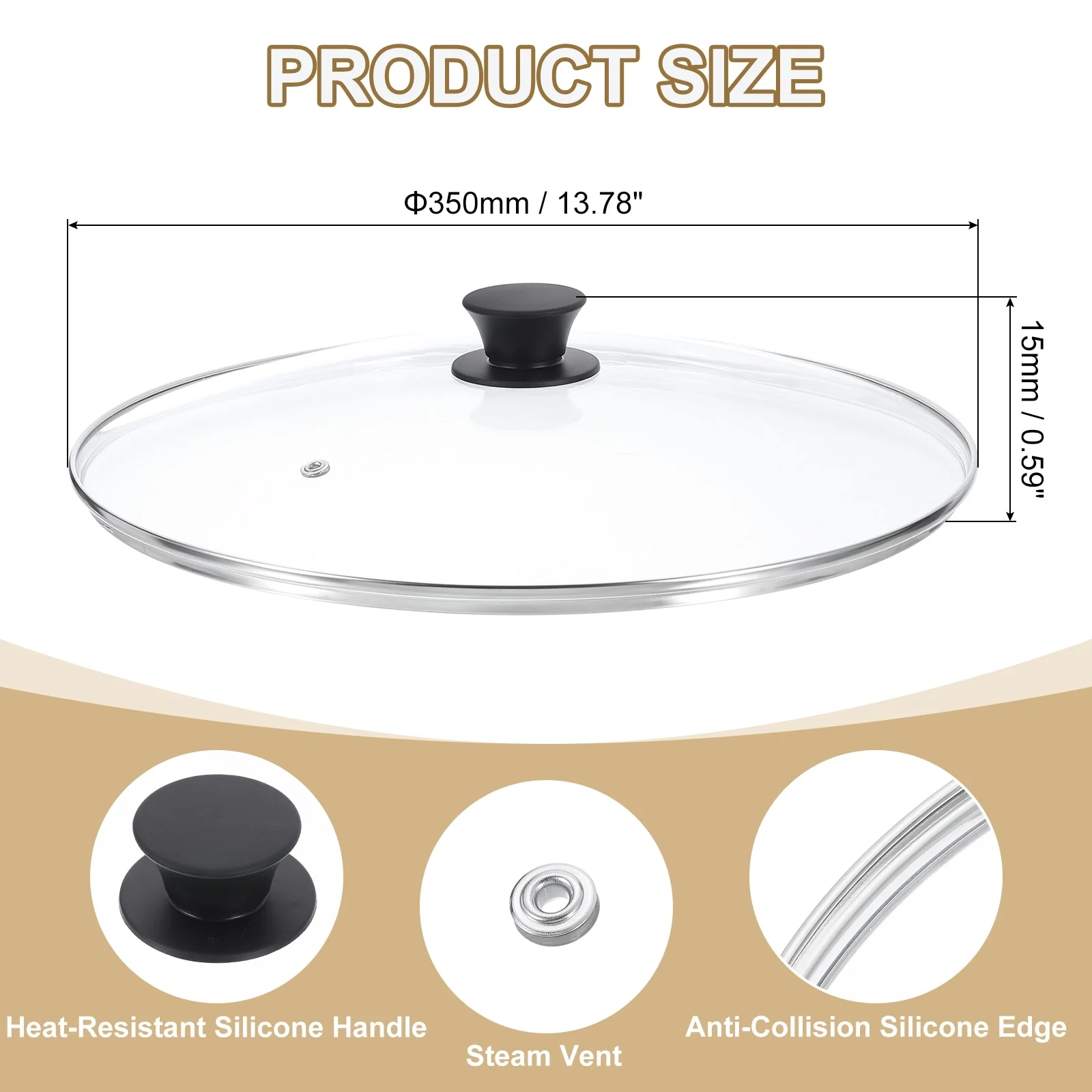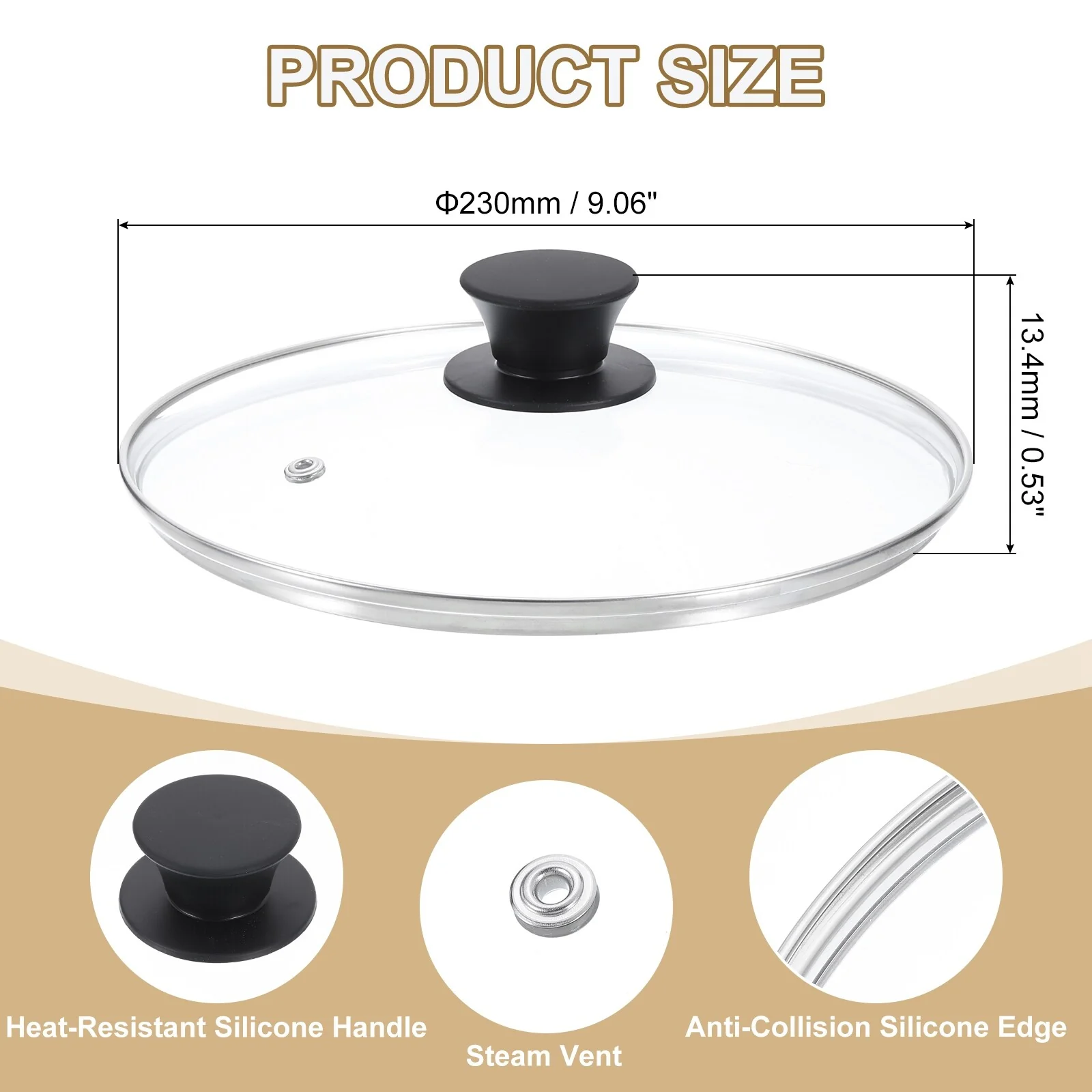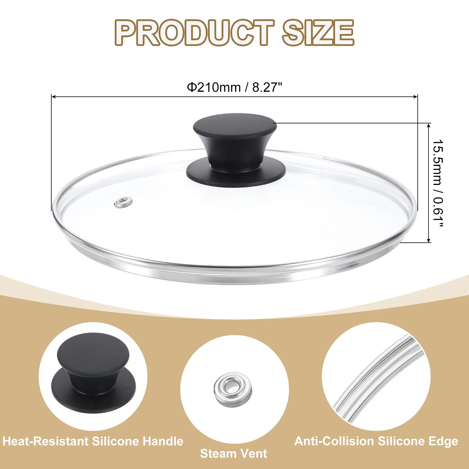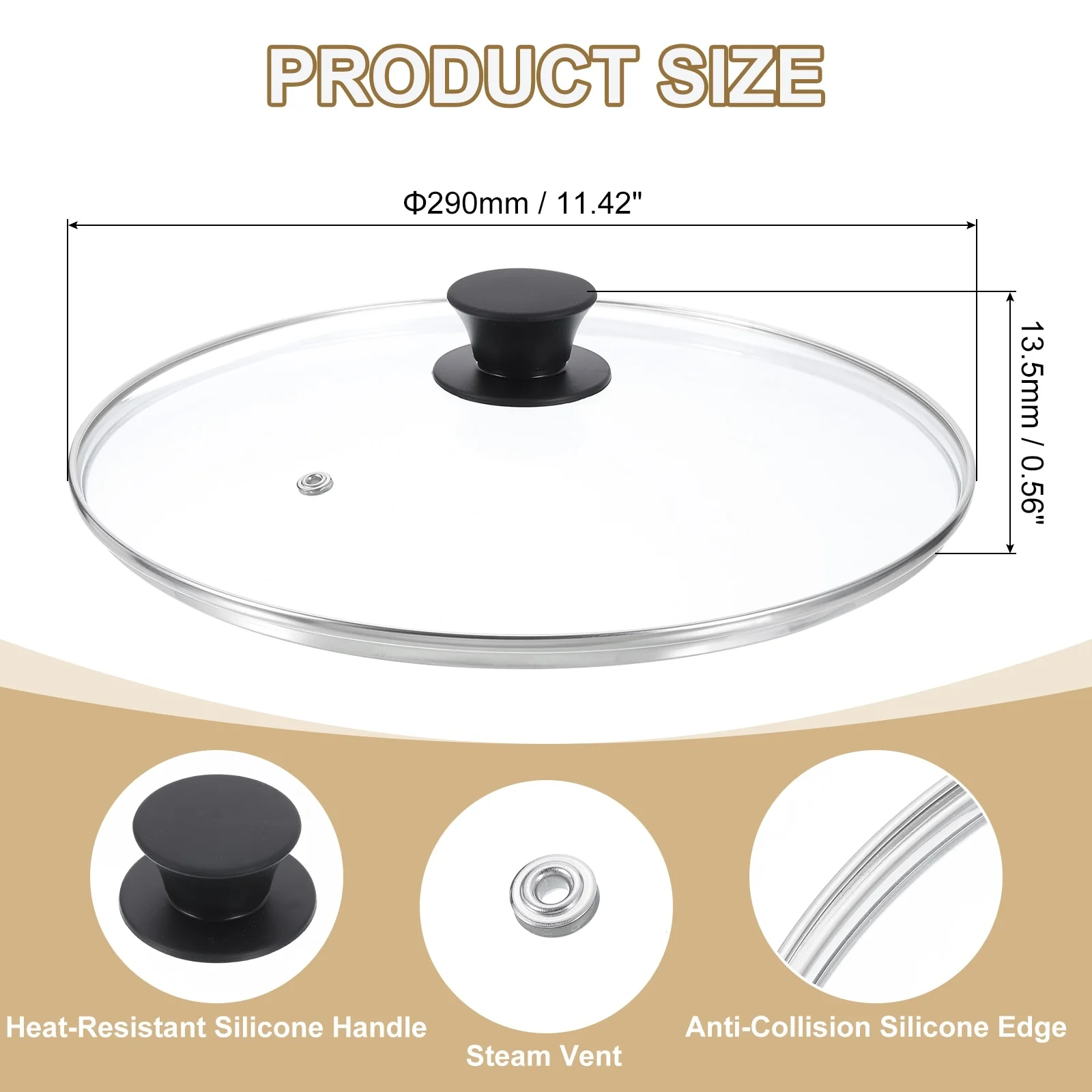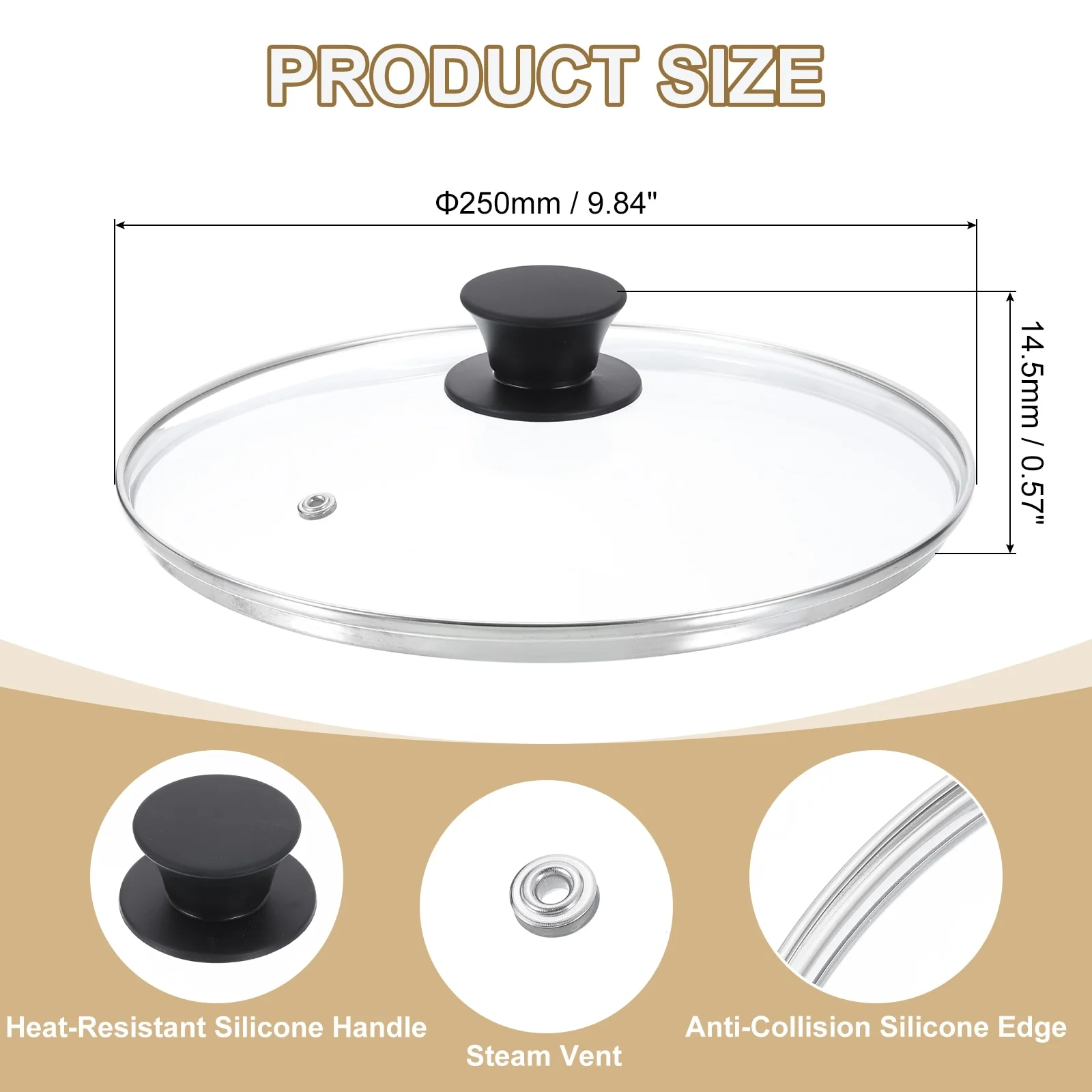 - [Material]: Made of tempered glass, it is stronger and more resistant to heat shock than ordinary glass lids, this ensures that the lid is explosion-proof at high temperatures and has better anti-fall performance when dropped. Stainless steel edging is heat-resistant and scalding-proof and is not easily damaged by collisions.