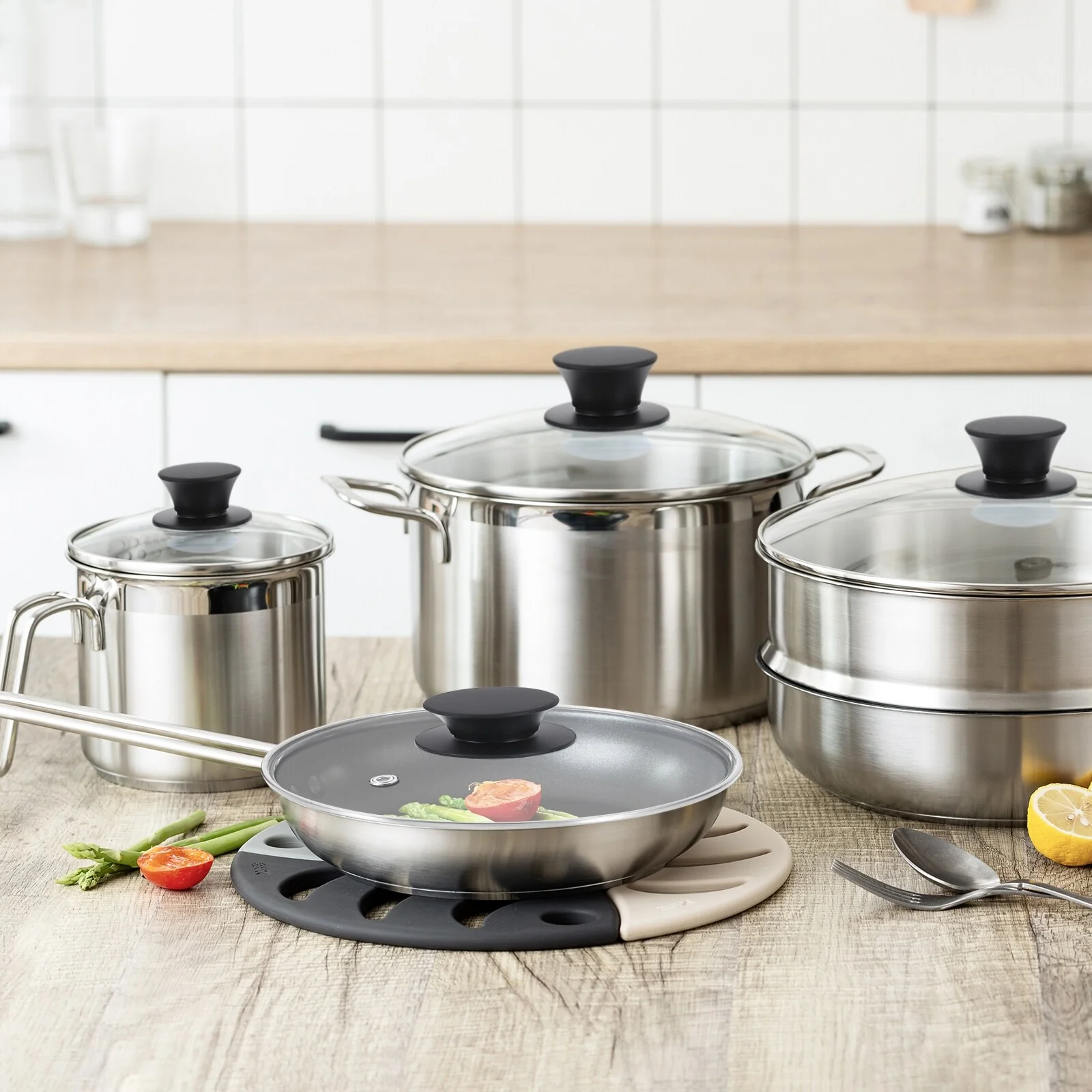 - [Stay Cool]: The silicone top handle and stainless steel edge are impact-resistant, and they keep the temperature low while cooking, so you won’t feel the heat from the steam and hurt your hands when you open the lid.