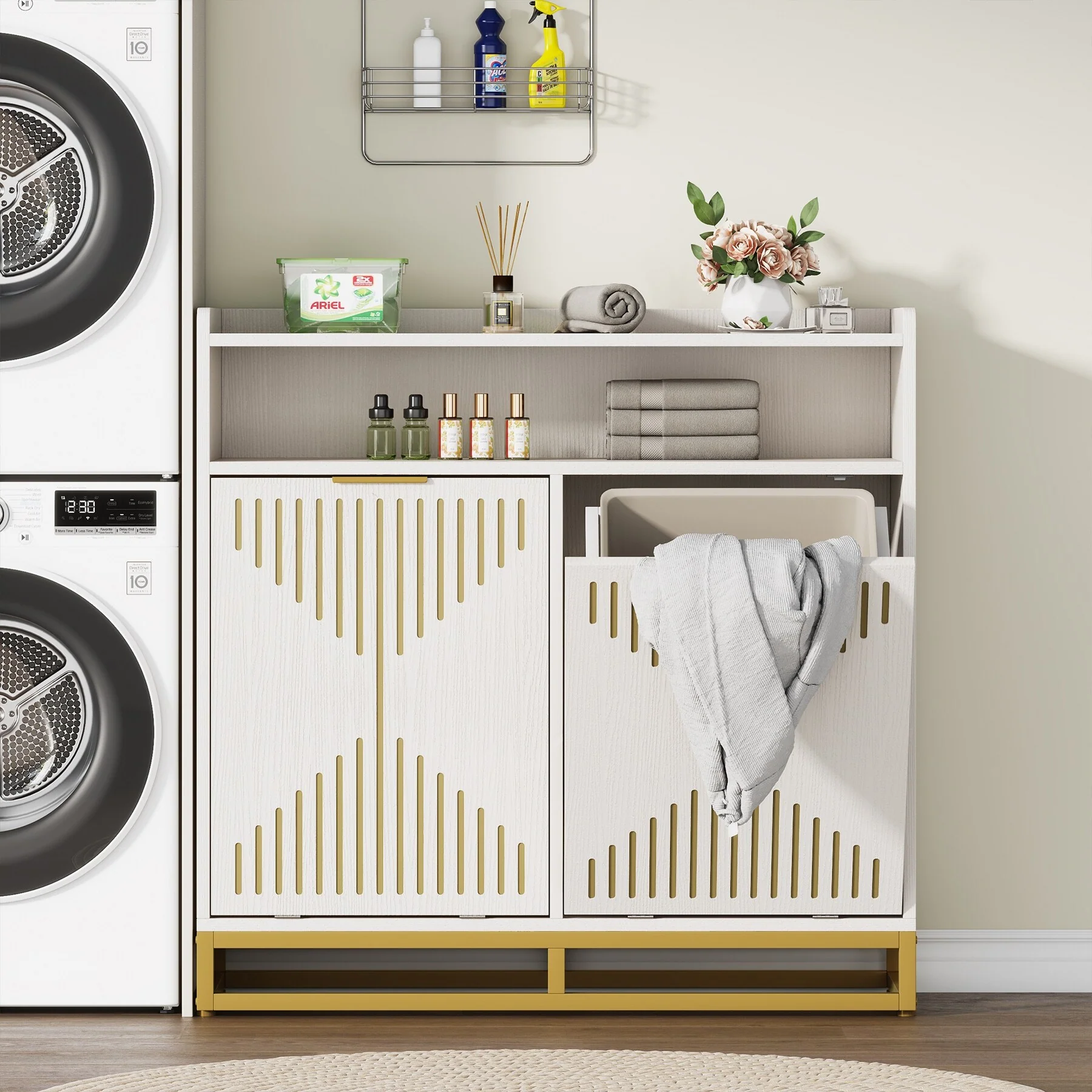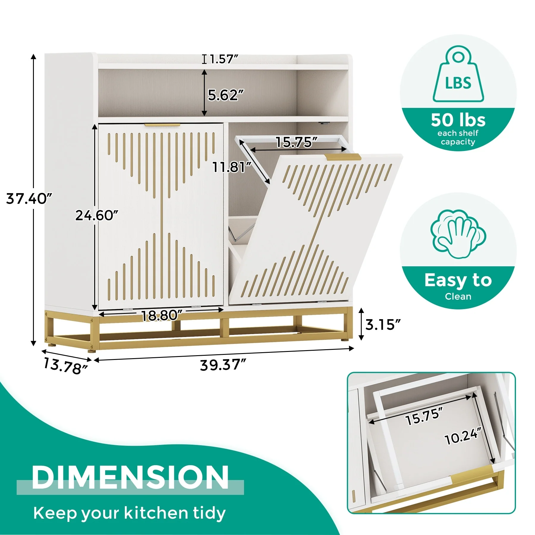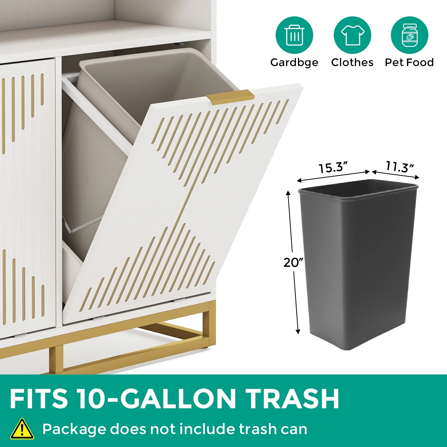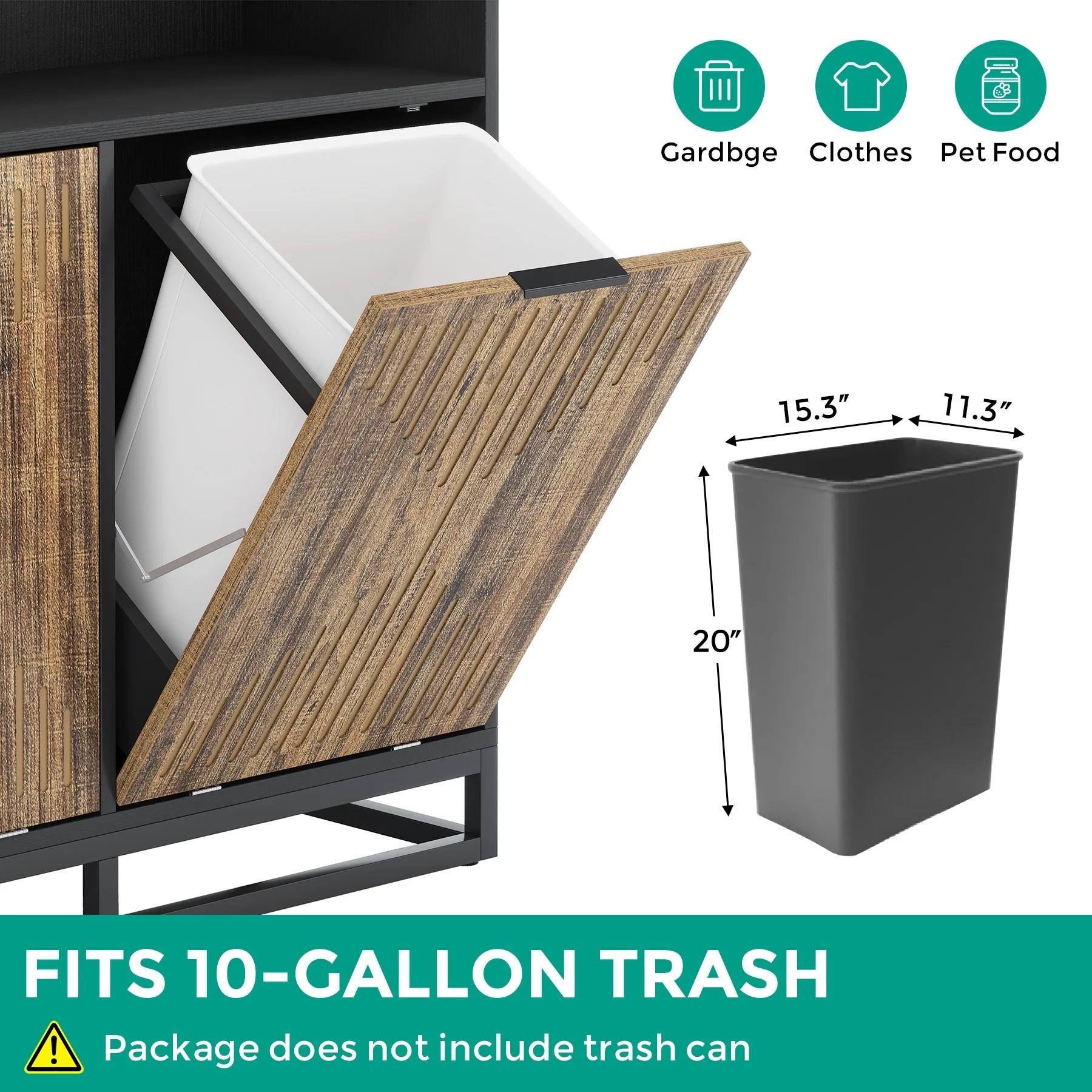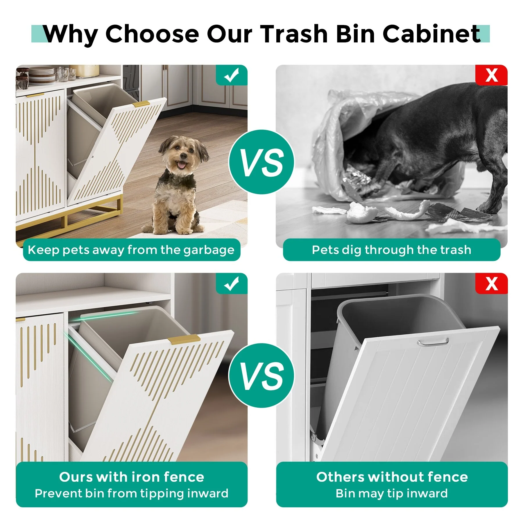 Double Tilt Out Trash Cabinet, Modern Farmhouse 20 Gallon Trash Bin Cabinets, Freestanding Recycling Cabinet for Garbage, Storage Cabinet for Kitchen, Dining Room, Laundry(No Trash Can)