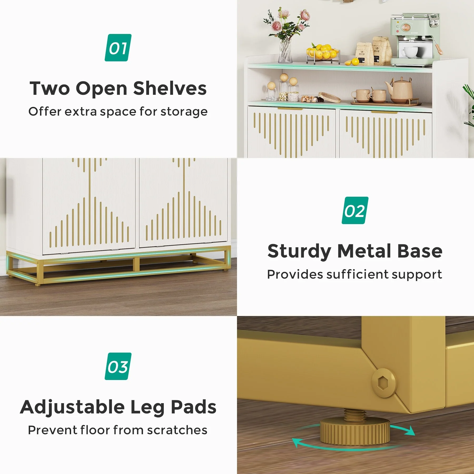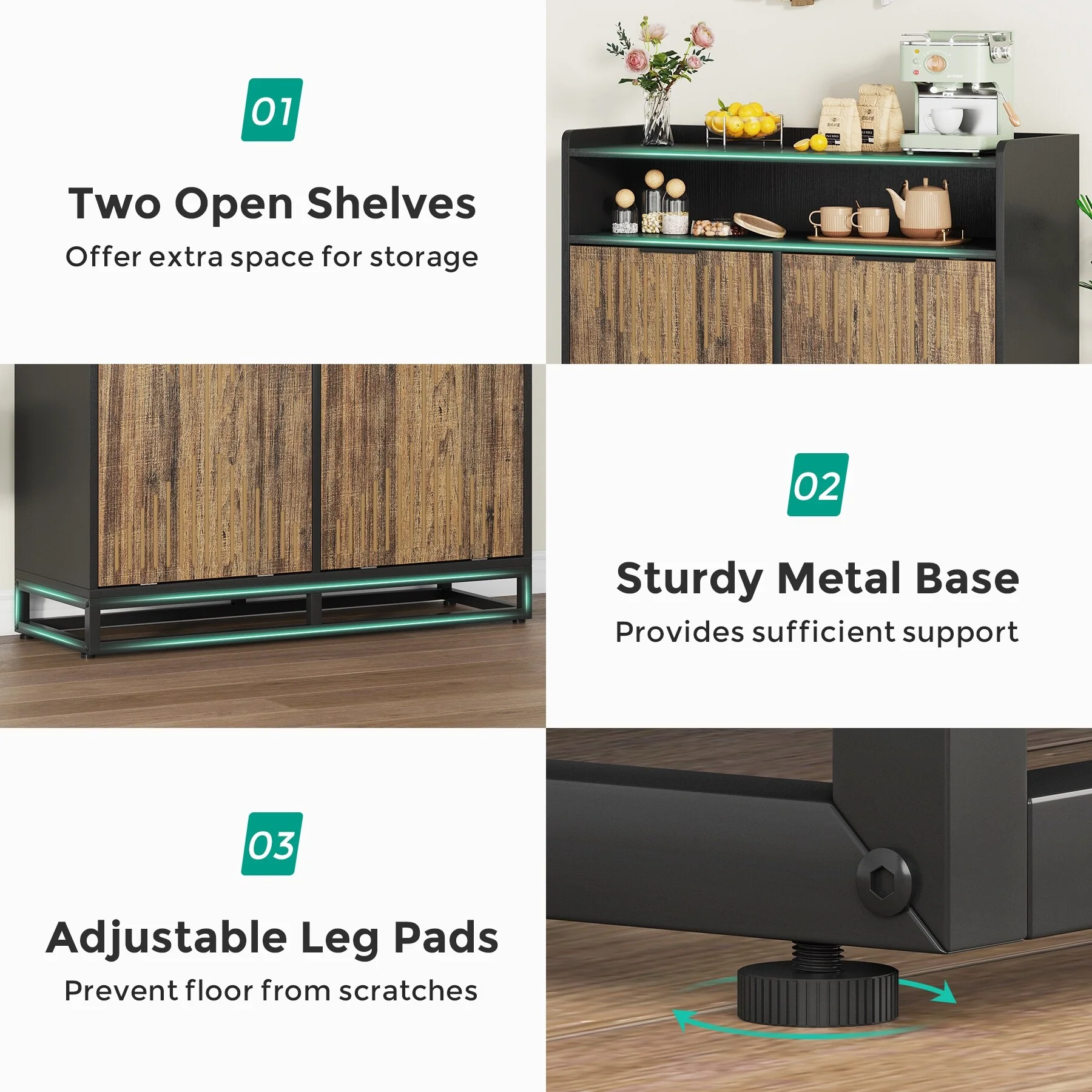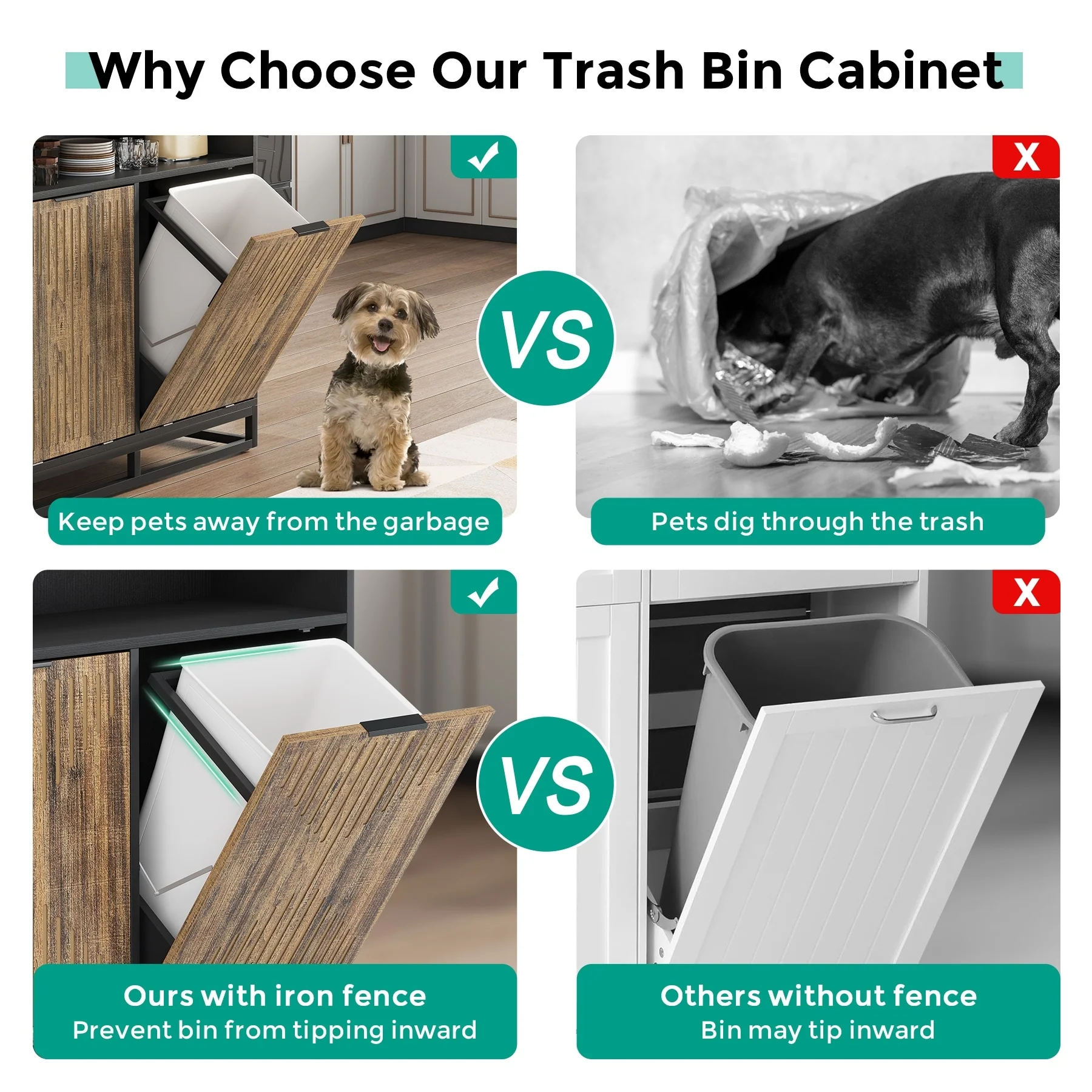 【Large Storage Capacity with Hidden Design】: Spacious top surface and open shelf give you more options to place kitchenware, juicer, coffee makers etc. Tilt-out design of our cabinet can conceal two 10-gallon bins, not only keeping your kitchen floor clean and curb odors but also preventing pets from accessing or tipping over the trash can.