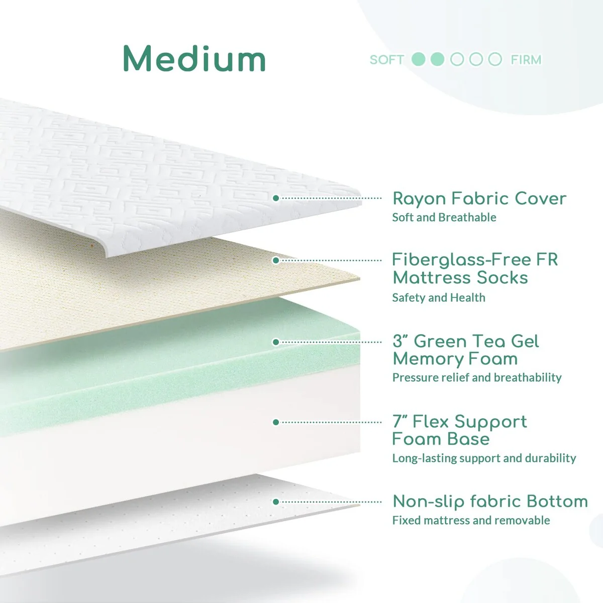 - Fiberglass-Free FR Inner Cover  The inner cover of the mattress provides a safe, effective flame retardant layer around our mattresses, without the negative aspects of fiberglass and other fire-retardant chemicals. That means no skin irritation, no breathing problems, and no health risks for you and your family. Â