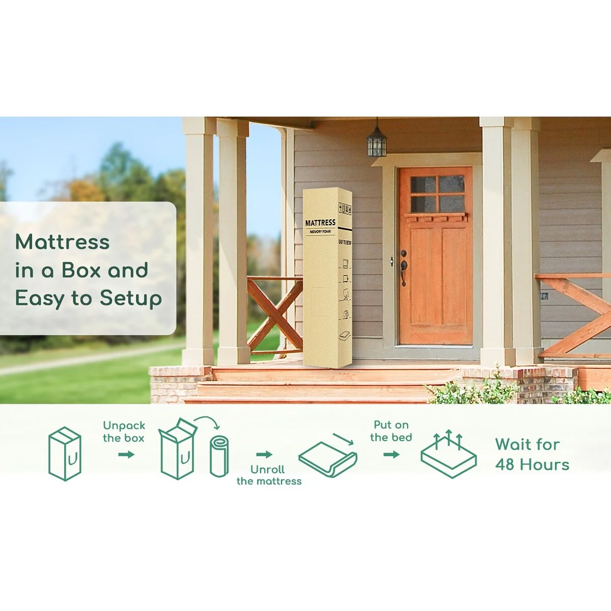 - Bed in a box  FAST, FREE, NO-CONTACT DELIVERY: Your Mattress will be compressed, rolled, and in a compact box for easy delivery and setup. Owning a new Mattress has never been so easy!  Non-slip fabric with zipper A cozy, non-slip cover that can be removed if necessary. Â
