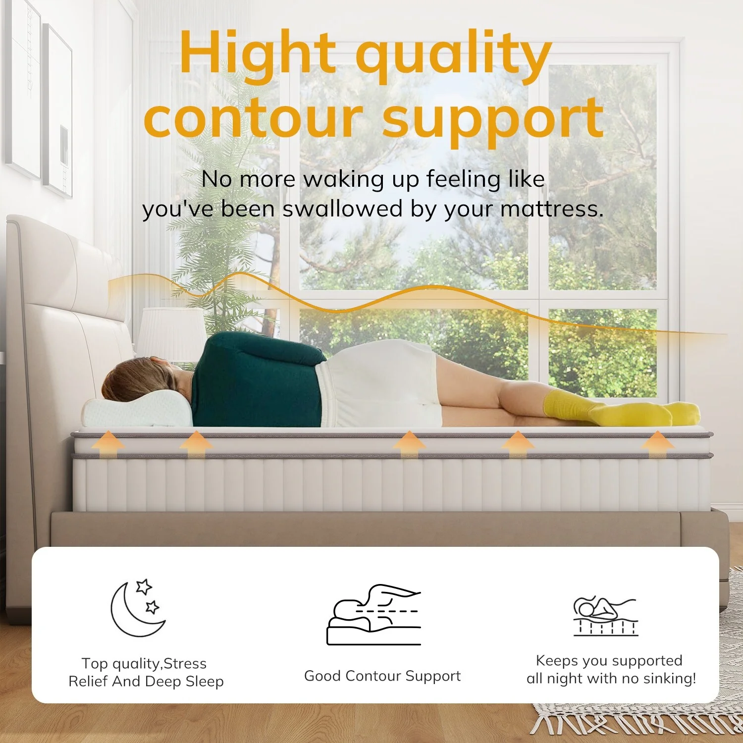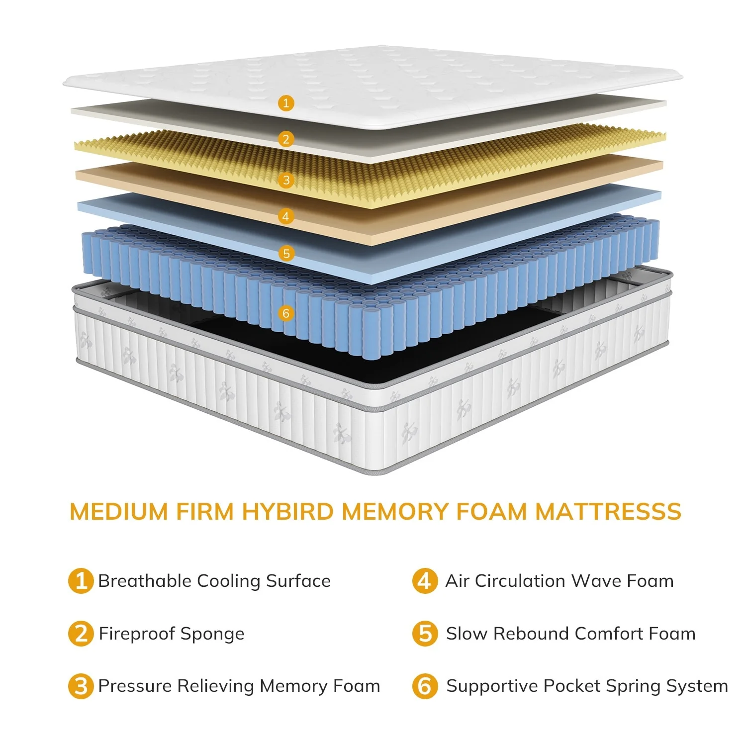 Are you still troubled by not knowing which mattress to choose? Our hybrid memory foam mattress will be your first choice, no matter whether you are a hot sleeper or not, the mattress will always keep your body temperature and will not make you overheated or too cold. Whether sleeping on your side or lying flat, the mattress will always give you enough support to conform to the curves of your body. Compared to traditional mattresses, Our pocket springs mattresses are designed to be closer to your needs. Trust us, you’ll have a great sleep experience.Â