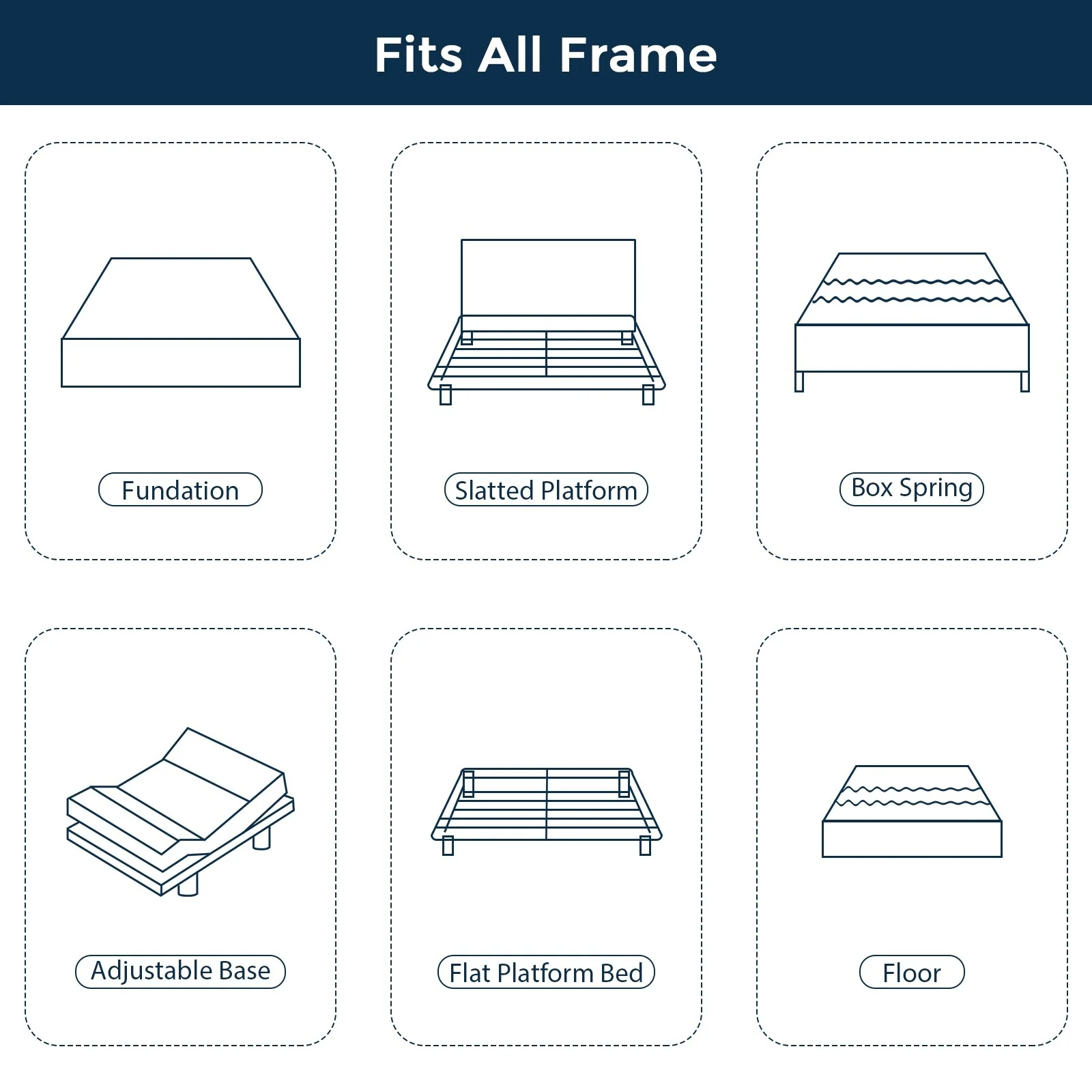 Effortless Setup – Convenience meets versatility with our queen hybrid mattress, designed to fit seamlessly on various bed frames, including box springs, modern platforms, bunk beds, or even directly on the floor. Setup is simple—just unroll, unwrap, and watch the mattress expand. Allow 48-72 hours for full expansion. A quick tip: be cautious during the mattress’s rapid unfurling process.