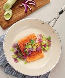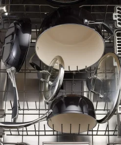 - The interior ceramic coating technology provides a cooking surface with quick release properties that is easy to clean