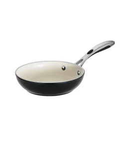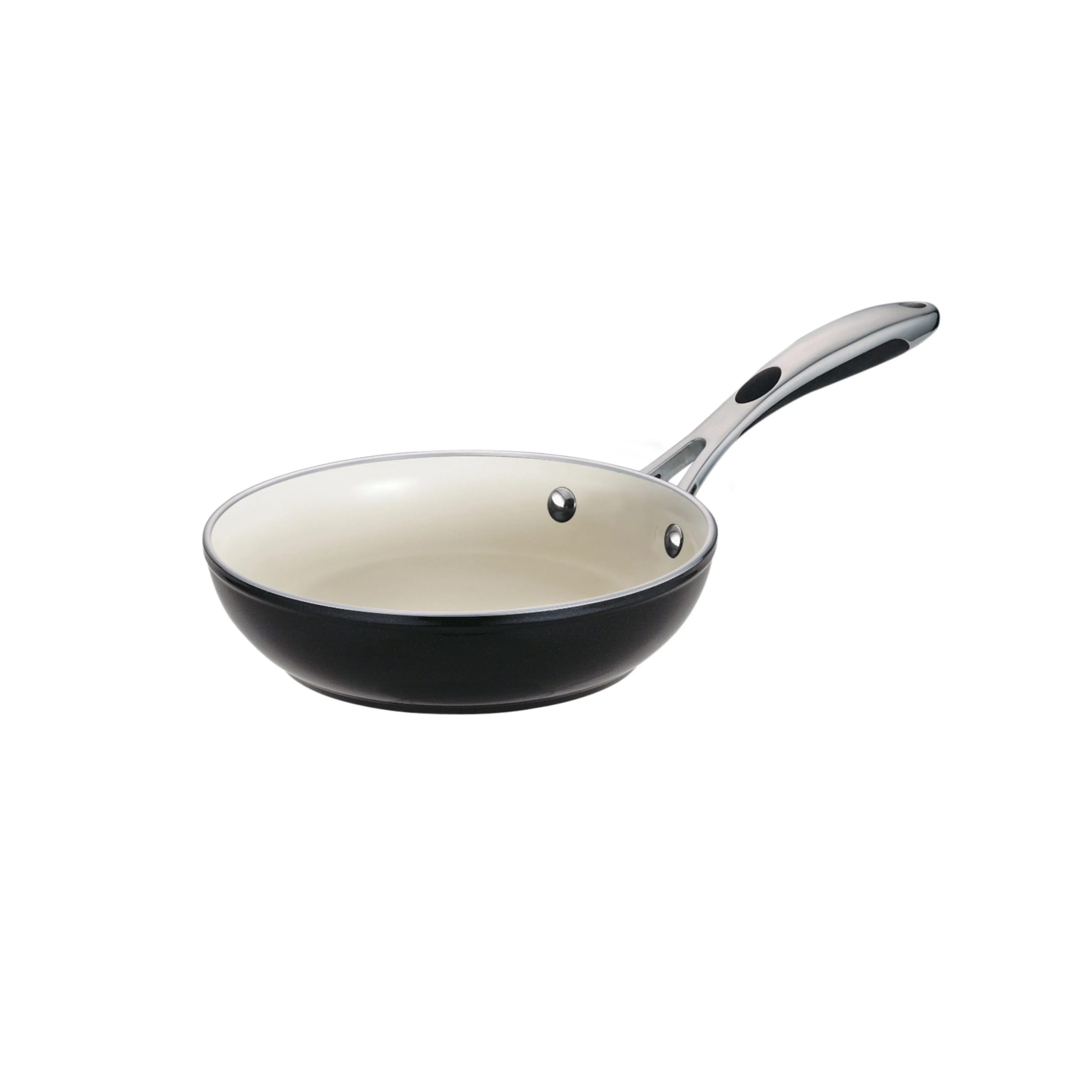 Tramontina gourmet Ceramica_01 Deluxe cookware is made of heavy-gauge cold-forged aluminum, features a durable Metallic Black porcelain enamel exterior and a smooth, PFOA-free ceramic interior coating, which provides simple healthy cooking, effortless cleaning and outstanding durability, while soft-grip, cast stainless steel handles ensure Comfort and stability when handling cookware.Â