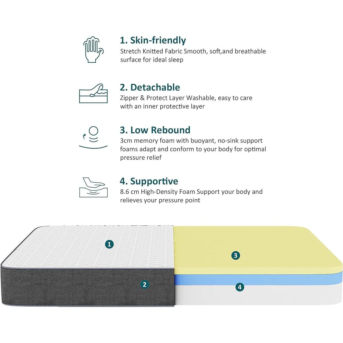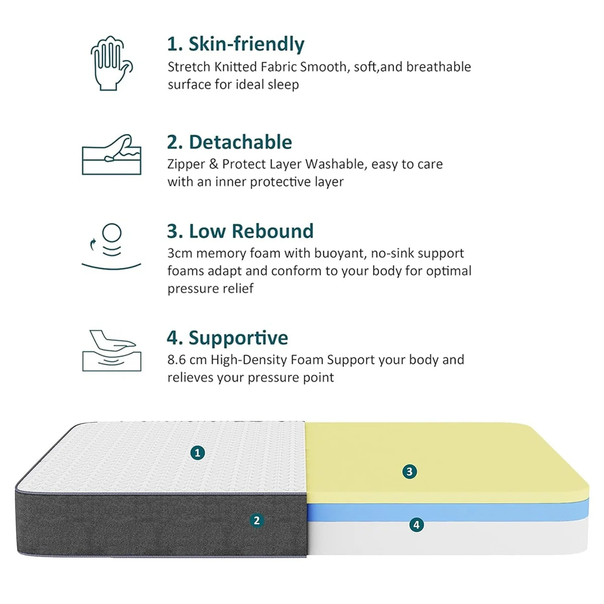 【HEALTH MATTRESS】The memory foam mattress has been certified by CertiPUR-US and Oeko-Tex Standard 100 without harmful substances like formaldehyde, mercury, and other heavy metals.