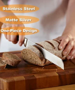 - Sleek and Stylish Design: With its sleek stainless steel construction and modern design, our bread knife adds a touch of elegance to any kitchen countertop or a knife block.
