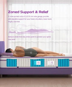 Experience the perfect balance of support and comfort with the Kescas 12 Inch Memory Foam Hybrid Mattress. Our firmest mattress yet features heavy gauge steel independent pocket innersprings for added stability and medium firmness, while the soft comfort foam and high-density foam offer a luxurious feel that’s ideal for stomach sleepers, plus-sized individuals, and those who prefer a medium firm mattress. With four CertiPUR-US certified foam layers, this mattress provides optimal softness and support, relieving painful pressure points for a restful sleep. The knitted fabric cover with linen maintains the electrolyte balance of your body and prevents static, making it super breathable and offering a soft, luxurious feel.