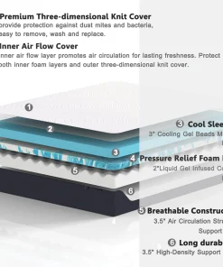 - Cooling gel-infused memory foam for a comfortable sleep experience