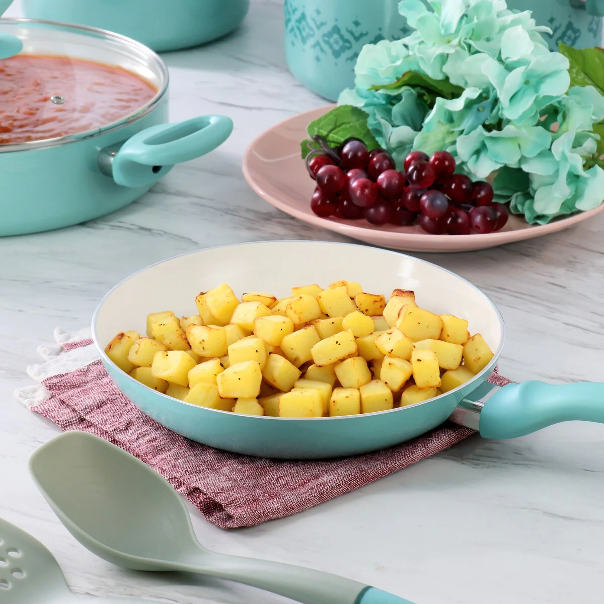 10 Piece Ceramic Nonstick Aluminum Cookware Set in Mint