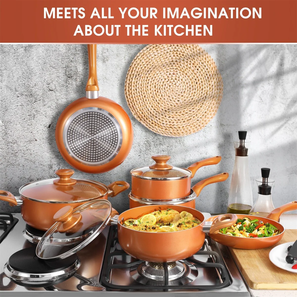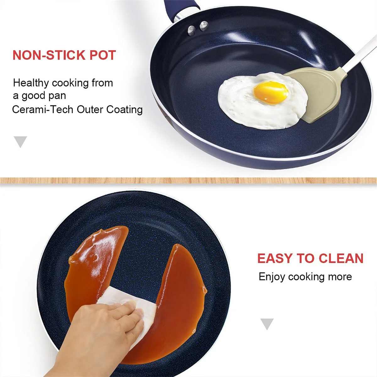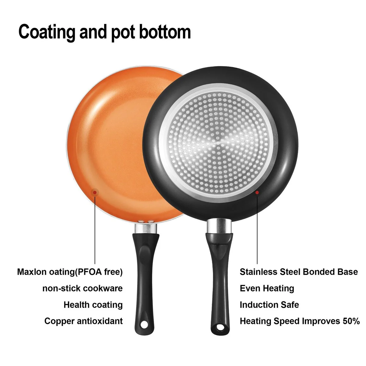 Package Included:1 x 8-inch skillet1 x 9.5-inch skillet1 x 1.2 quart saucepan with lid1 x 2 quart saucepan with lid1 x 2.6 quart stockpot with lid1 x 4.5 quart stockpot with lid
