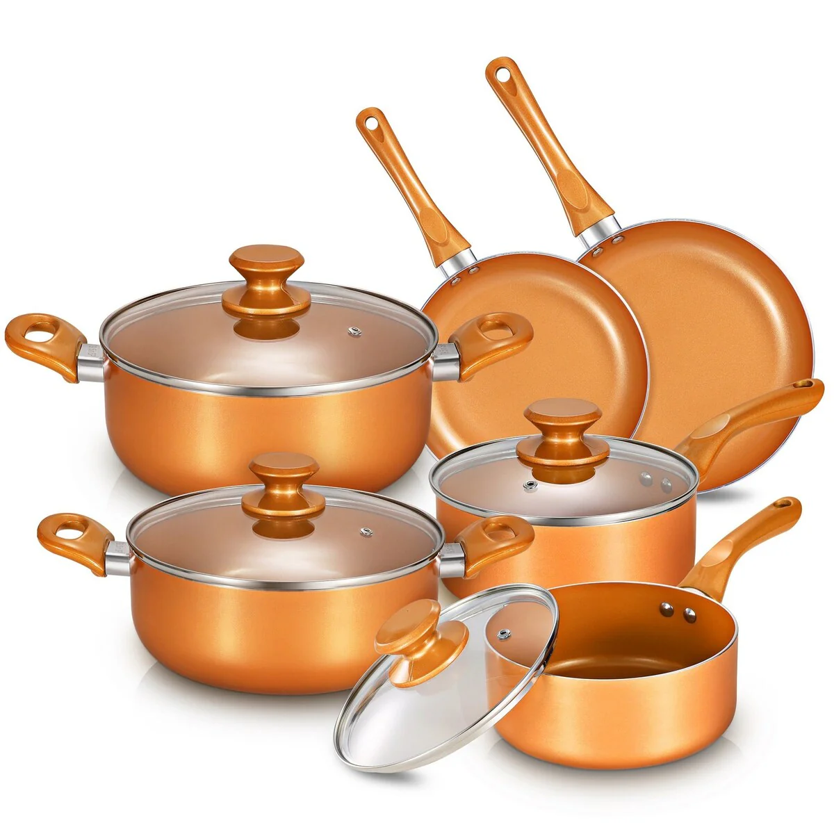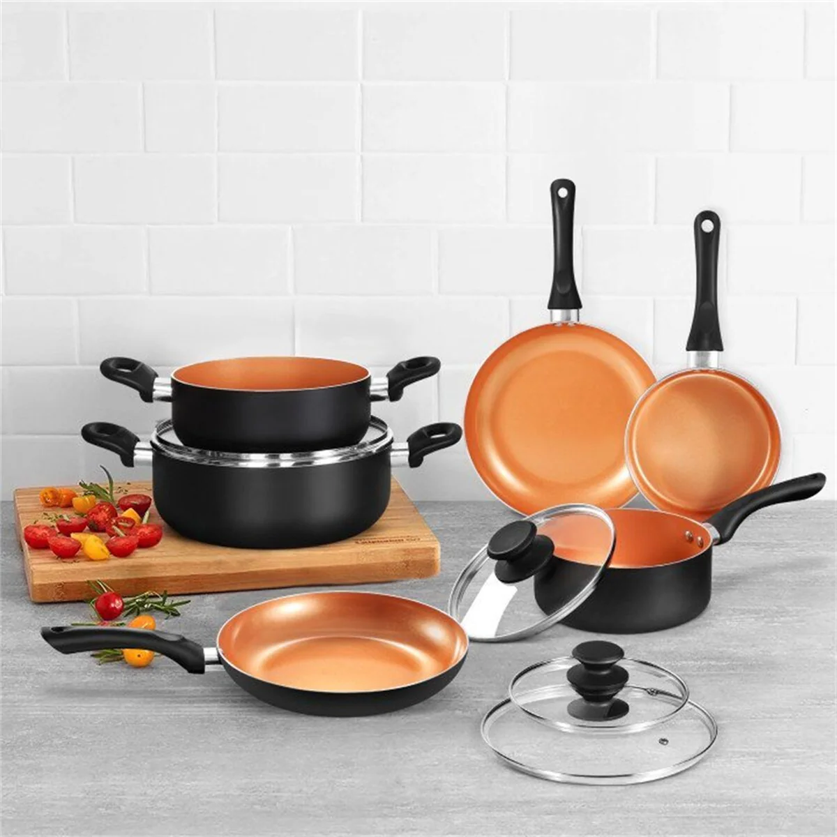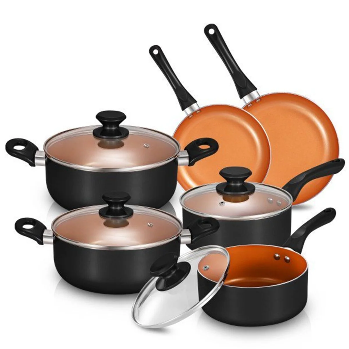 Package Included:1 x 8-inch skillet1 x 9.5-inch skillet1 x 1.2 quart saucepan with lid1 x 2 quart saucepan with lid1 x 2.6 quart stockpot with lid1 x 4.5 quart stockpot with lid
