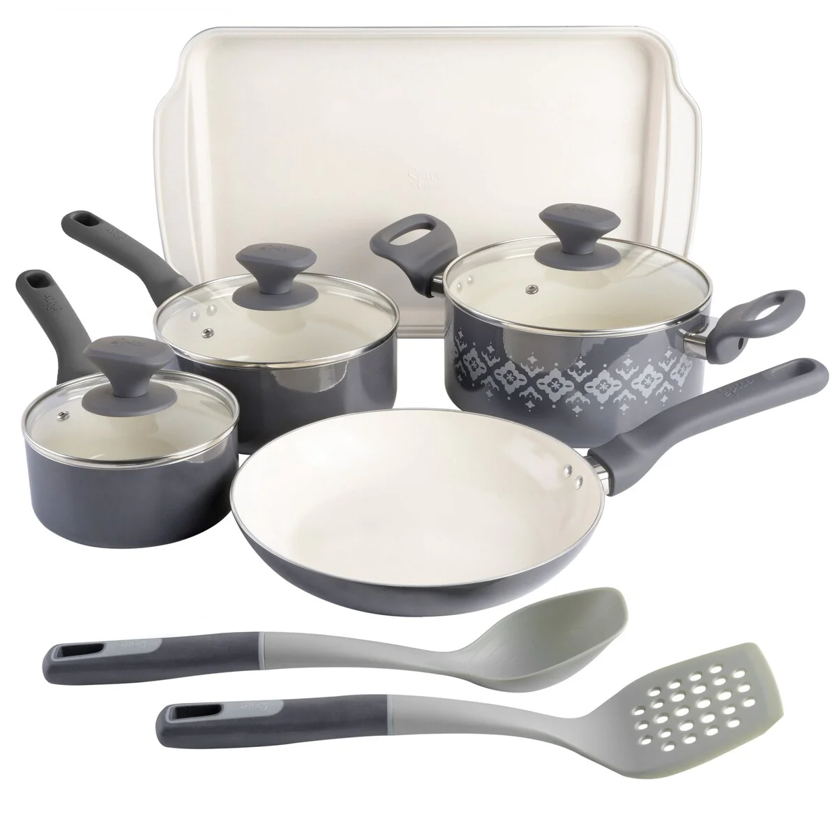HEAVY-DUTY ALUMINUM CONSTRUCTION: This cookware set features durable aluminum construction designed for fast, even heat distribution.