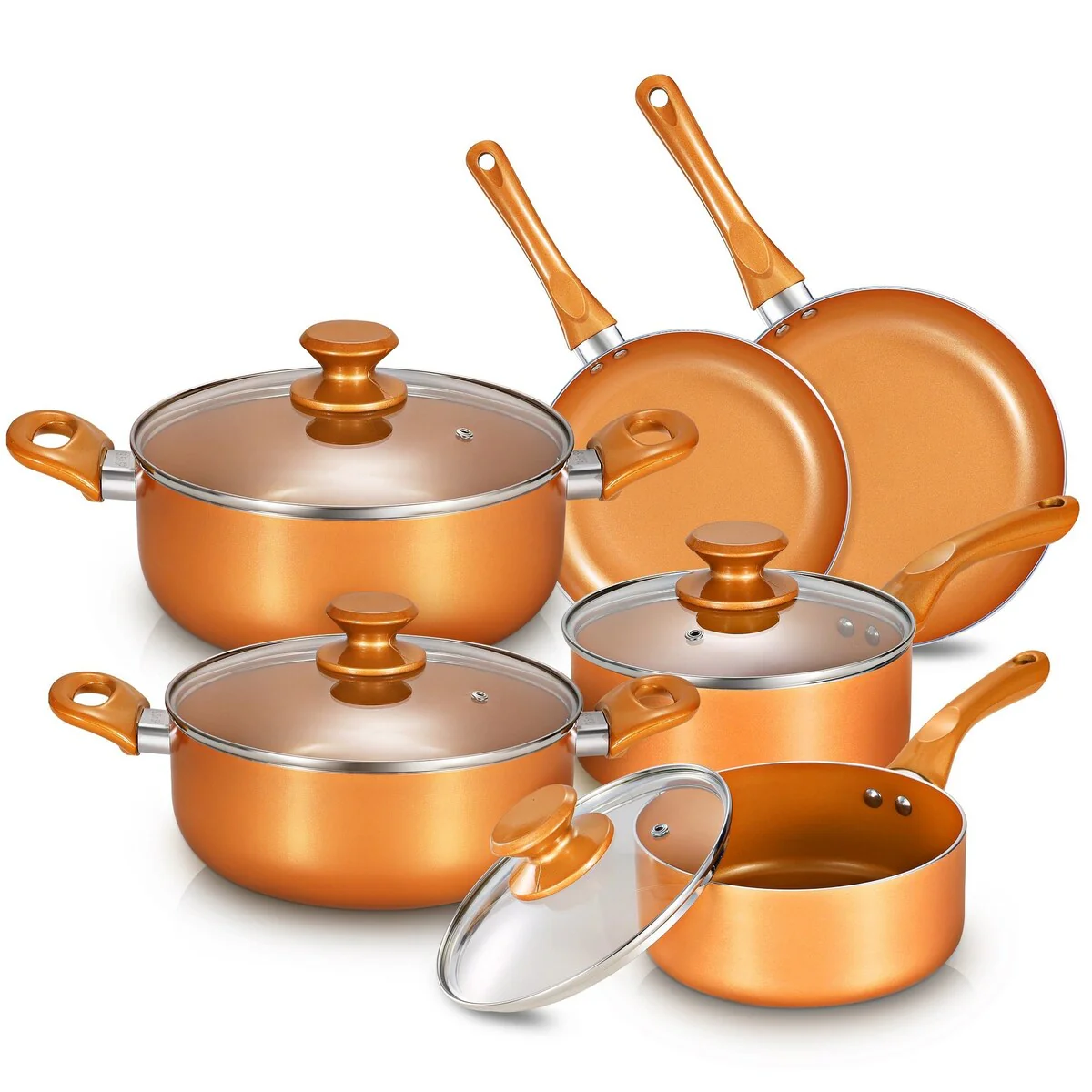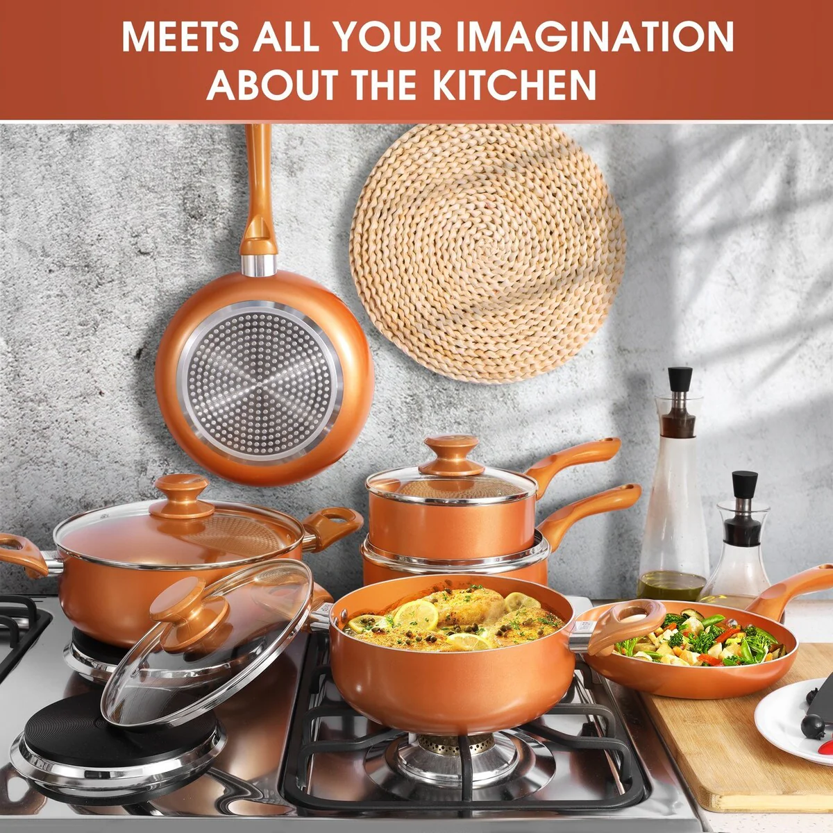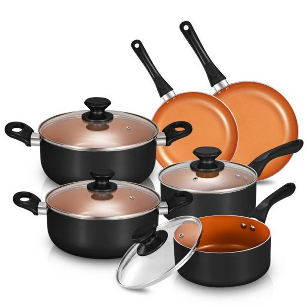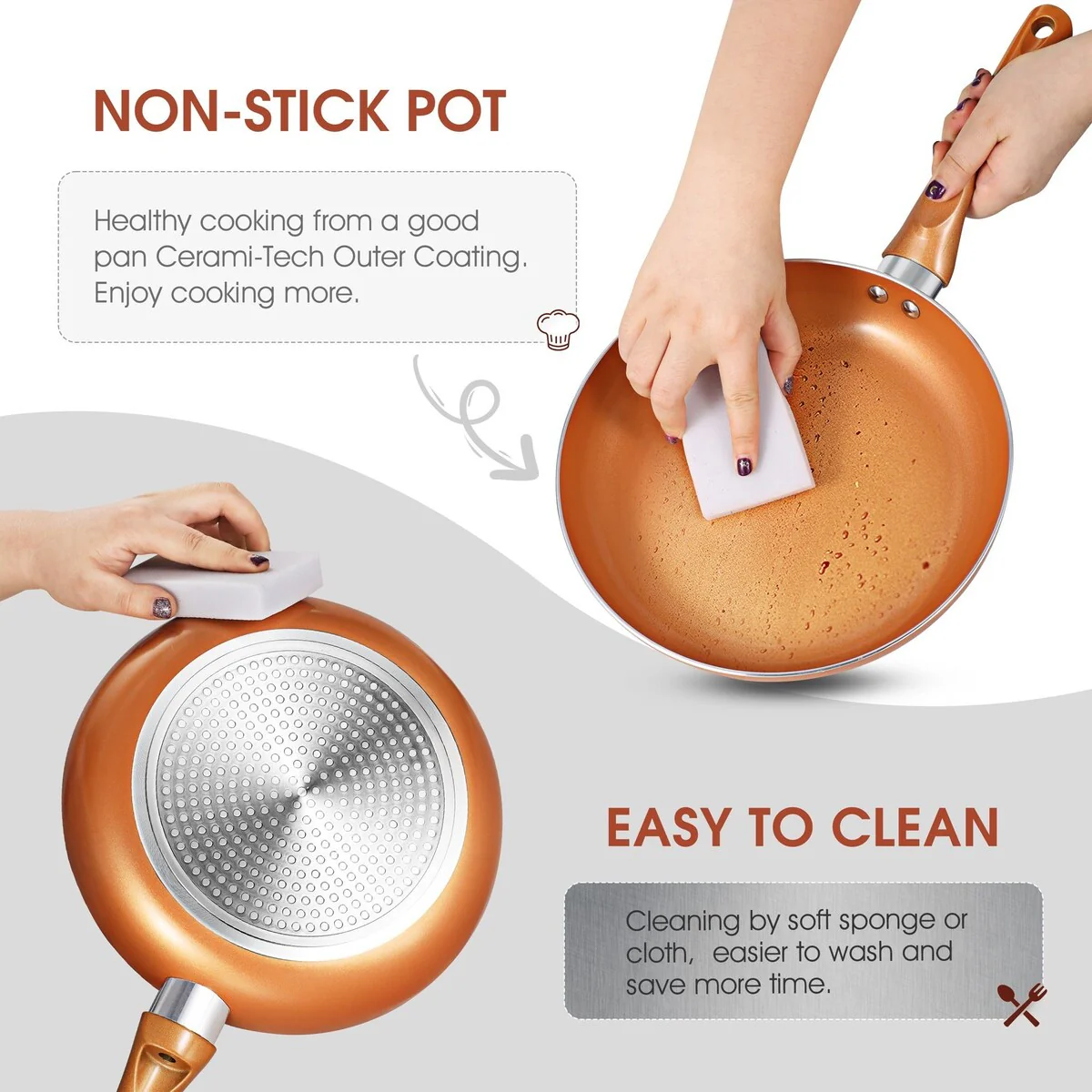 Package Included:1 x 8-inch skillet, 1 x 9.5-inch skillet, 1 x 1.2 quart saucepan with lid, 1 x 2 quart saucepan with lid, 1 x 2.6 quart stockpot with lid, 1 x 4.5 quart stockpot with lid