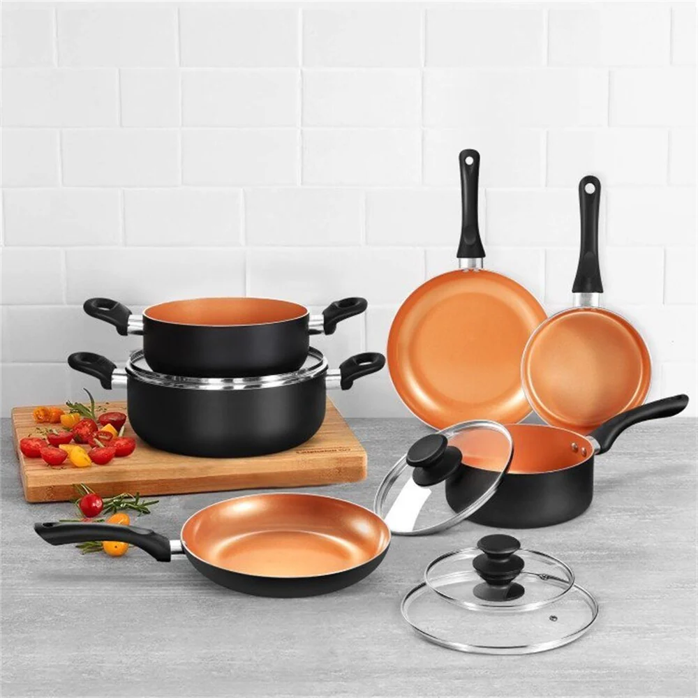 HEAVY-DUTY ALUMINUM CONSTRUCTION: This cookware set features durable aluminum construction designed for fast, even heat distribution.