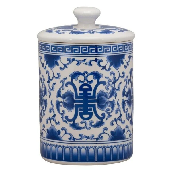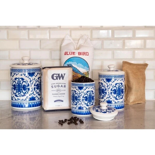 10 Strawberry Street Chinoiserie 3 Piece Canister Set, White/Blue